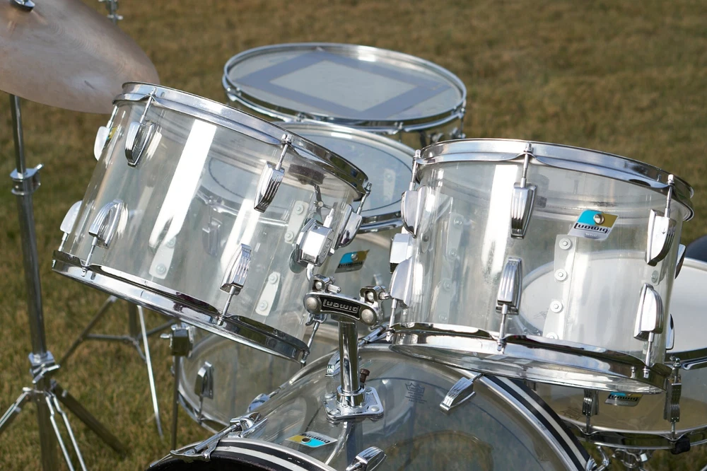 First Run of Ludwig Vistalite. Original owner. Purchased in 1972. Very lightly used and carefully protected. SET INCLUDES: -Left Wing Tom 13" Badges #969901 -Right Wing Tom 14" #969932 -Floor Tom 16" #969739 -Floor Tom 18" #975221 -Kick 24" #956649 -Matching 5x14" Snare Drum #997434 Zildjian cymbals 70's (Thin stamp) set includes: -18" Crash/Ride -14" New Beat Hi-Hat Set -16" crash -20" Mini-cup Ride (rare) COMMENTS: Toms and kick were always transported in cloth cases. No shell cracks. No rust. Kick hoops have a few paint chips (easy to touch up) Kick petal (Rogers Swiv-o-matic) needs petal stay plate replacement or weld repair. I used duct tape. Lovingly cared for, cleaned and polished regularly. 16 years of actual play. Been in dry storage in original cases for the last 35 years.