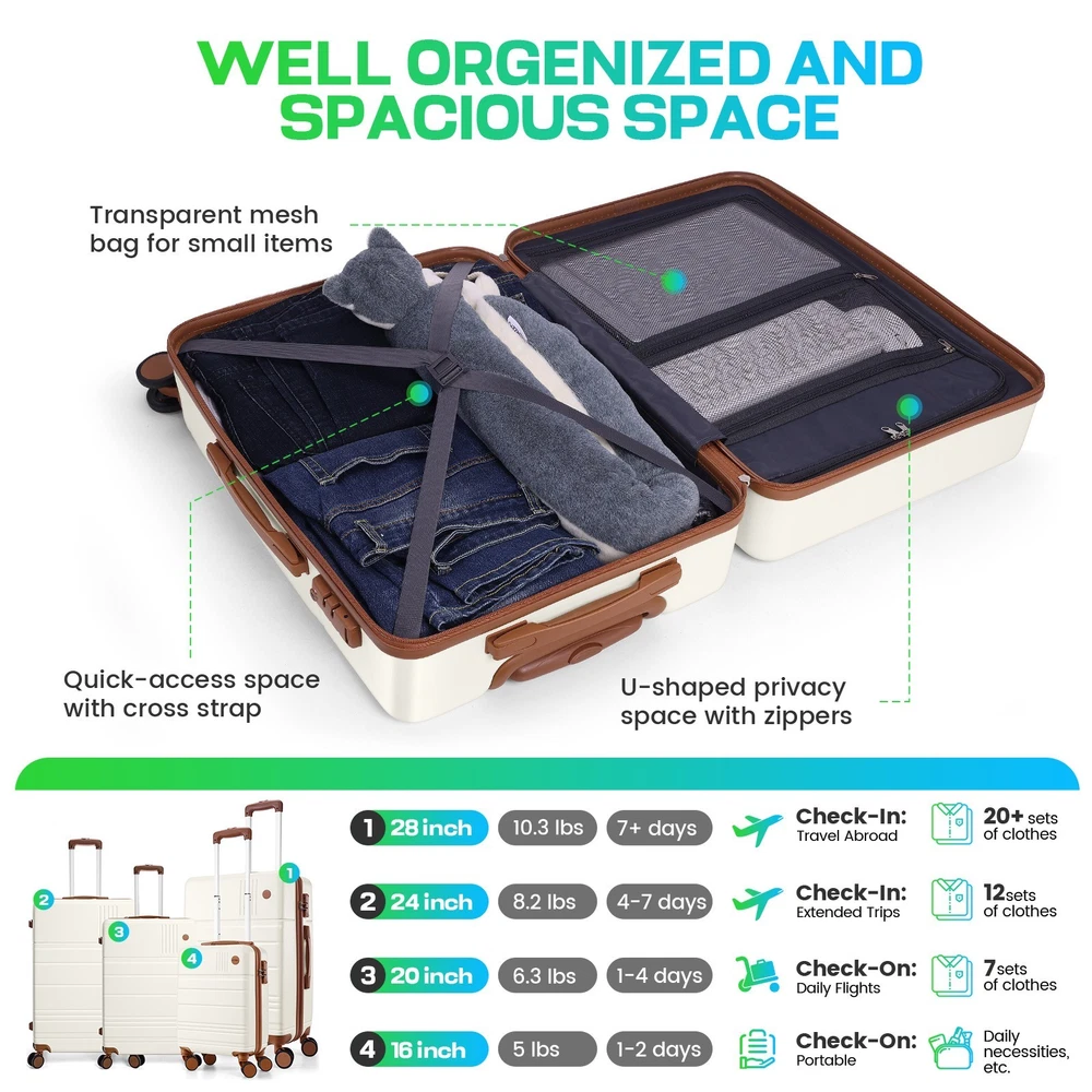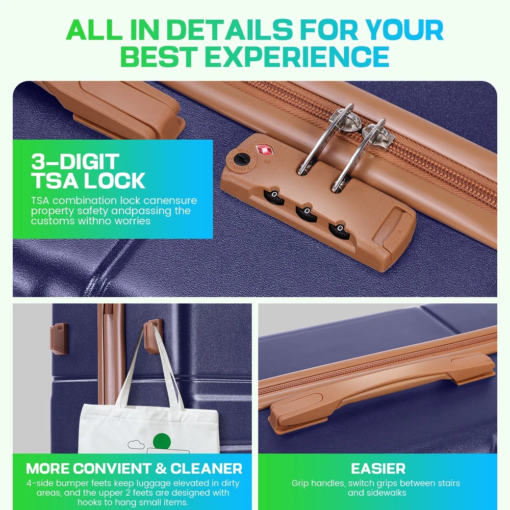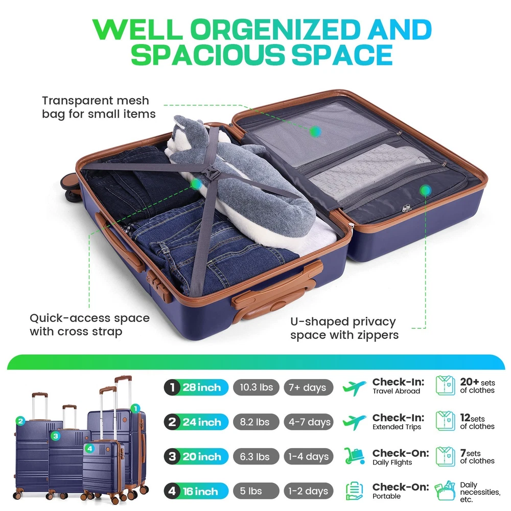 Description Luggage Sets 4 Piece, ABS+PC Hard Shell Suitcases with Wheels, TSA Aproved Lock and Convient Side Hook, Travel Suit Case Set with Small Kids Suitcase 1 Set for Multiple Needs: The Luggage sets include a 20-inch carry-on suitcase, 24-inch and 28-inch checked suitcases, a 16-inch samll kids suitcase is included, which is also carry-on approved. You can choose suitcase of different sizes according to your specific needs, or take all your suitcase when you go out with family and friends. TSA Lock and Hard Shell: Made of scratch-resistant ABS+PC composite material, the suitcase ensures reliable protection for your belongings and long-lasting appearance. The TSA-approved lock safeguards personal items and avoids violent openings during security checks. Well-Organized Expandable Space: The suitcase interior features zippered compartments, cross straps, and a mesh bag for an efficient organization, keeping items secure and clutter-free. Practical Additional Features: The rubber top/side handles ensure a comfortable grip when lifting, and 4 raised bottom feet keep the suitcase stable and protected from ground dirt during placement.The two feet at the top are hook-shaped and are used to secure small items. Professional Service Team: Contact our customer service team for immediate assistance with any product or delivery inquiries. We prioritize quick and tailored solutions to ensure your complete satisfaction. Payment 1 . We accept PayPal only. 2 . Payment should be completed within 4 (Four) days of auction closing. Or unpaid dispute will be filed for closing auction. 3 . Sales Tax of 9% will be applied for orders shipped within the state of California 4 . We will leave a positive feedback immediately after payment is received. We appreciate a positive feedback as much as you do. If for some reason there is any issue with the purchase, please contact us prior to leaving feedback, and we will be glad to work with you to have it resolved. Shipping 1 . We Ship to United States ONLY. 2 . Ship from two warehouses and only to eBay ADDRESS. Package handling only takes 1 business day at our warehouse, so please make sure entering correct payment and shipping information before checking out. Once your payment is completed, pls leave ebay note if the changes are needed before we send the product. 3 . Truck company: 3-8 business days. | USPS: 2-6 business days. | UPS/FEDEX: 3-5 business days. 4 . Lccal pick up is available. Warranty and Guarantee 1 . All of our items come with a 30-day return policy. We ensure all our items are new and in excellent condition prior to shipping. In the event that you receive the item that is not to the standards above, please contact us via e-Bay messages. All returns must be in new original condition as received and should be shipped with delivery confirmation 2 . We ONLY accept the return for original package. Please make sure that item has NO man-made sabotage. Used items will not be accepted for return. 3 . We reserve the right to refuse any returns for objective reasons. 4 . All NON-seller mistake returns for refund are subject to 20% re-stocking fee and buyer should pay for the round-trip shipping fee. (E.g. you bought wrong model or wrong color). Feadback 1 .Any problem after receiving our goods,please contact us before leaving Neutral/Negative feedback.We promise to help you solve it asap,and make you feel satisfactory absolutely. 2 . Please DO NOT leave negative feedback without asking for help. Please do not leave negative or neutral feedback if you haven't received item in 30 days, because we have mentioned the shipping time repeatedly.
