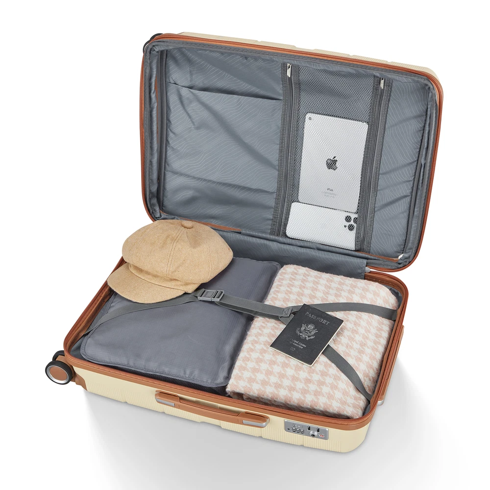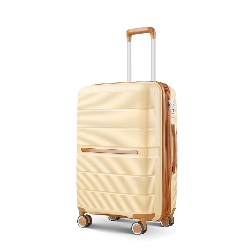 Specification Product Information Item Code:W2098P186373 Product Type:General Item Product Name:Luggage Sets 4 Piece(14/20/24/28) PP Lightweight & Durable Expandable suitcase Place of Origin:China Main Color:Apricot Cream Main Material:Polypropylene Product Dimensions Assembled Length (in.):Not Applicable Assembled Width (in.):Not Applicable Assembled Height (in.):Not Applicable Weight (lbs.):Not Applicable Package Size Length (in.):19.30 Width (in.):11.80 Height (in.):30.00 Weight (lbs.):26.50 Product Features Top quality luggage sets, PC material for hardshell, which makes the luggage more durable, lighter and impact-resistant. 21in is best for carry on, 29in expands 20% for more spaces. Organized and Spacious Interior. The fully lined luggage includes a handy divider and an interior organizer with zippered pocket for smaller items. Organized and Spacious Interior. The fully lined luggage includes a handy divider and an interior organizer with zippered pocket for smaller items. Adjustable 3-level aluminum telescoping handle allows you to quickly maneuver in tight spaces and it's sturdier than most of the telescoping handle on the market. The top/side soft reinforced grip handles for easy carrying when in a hurry, or it can be really handy when lifting the suitcase with heavy weight. Side-mounted TSA LOCK with smooth YKK zipper act to deter theft, ensuring that only you or a TSA agent have easy access to your belongings when traveling, added security and convenience. Multi-directional spinner wheels to provide 360° effortless mobility and ease on traveler's wrist, re-engineered lightweight. Description
