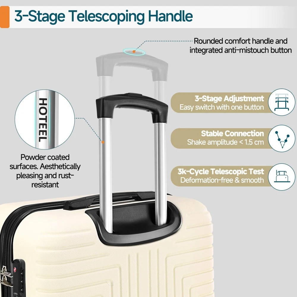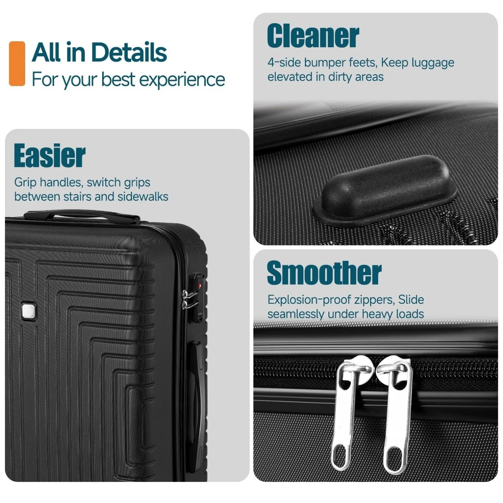 Luggage Sets 3/4/5 Piece, ABS+PC Hard Shell Suitcases with TSA Lock & Side Hook~