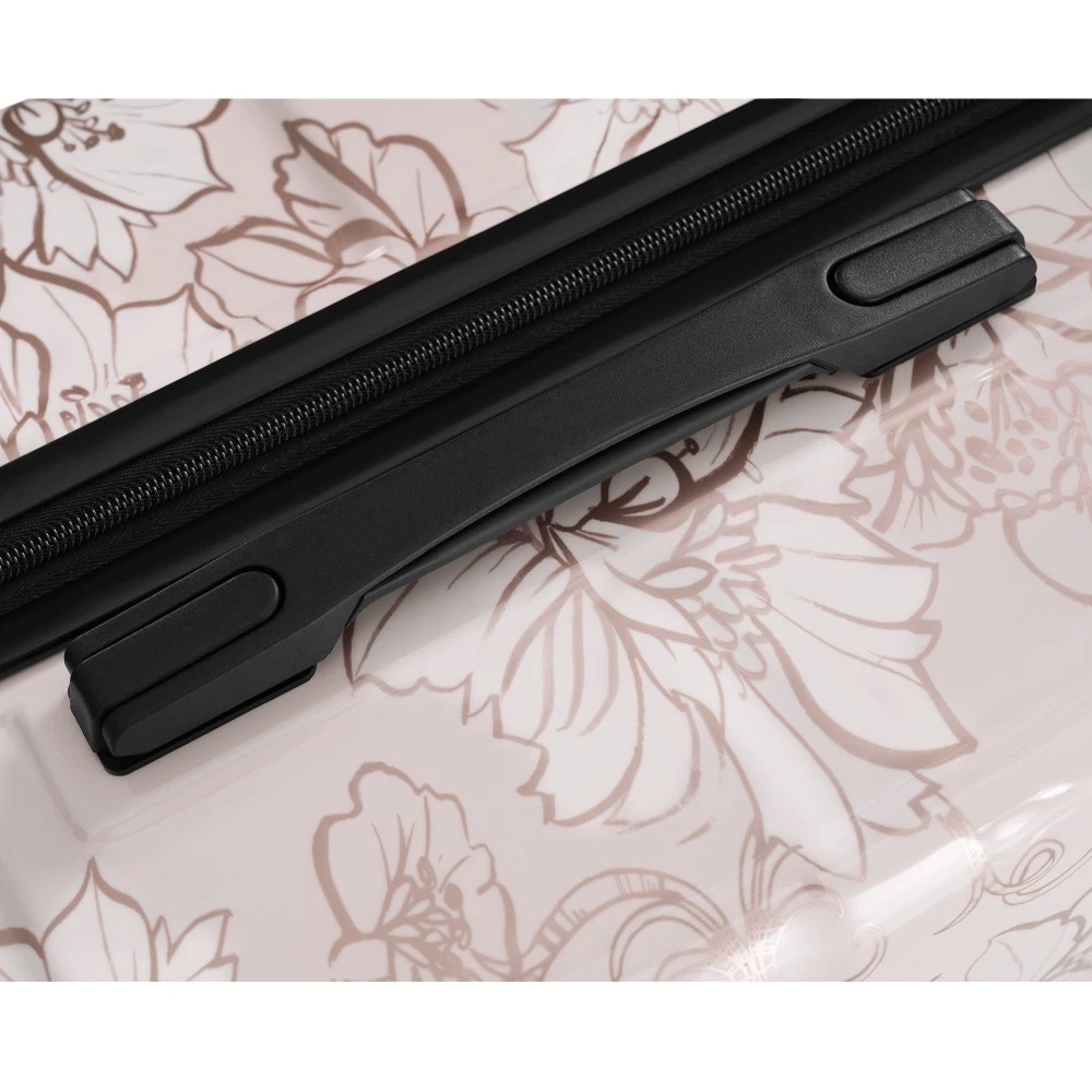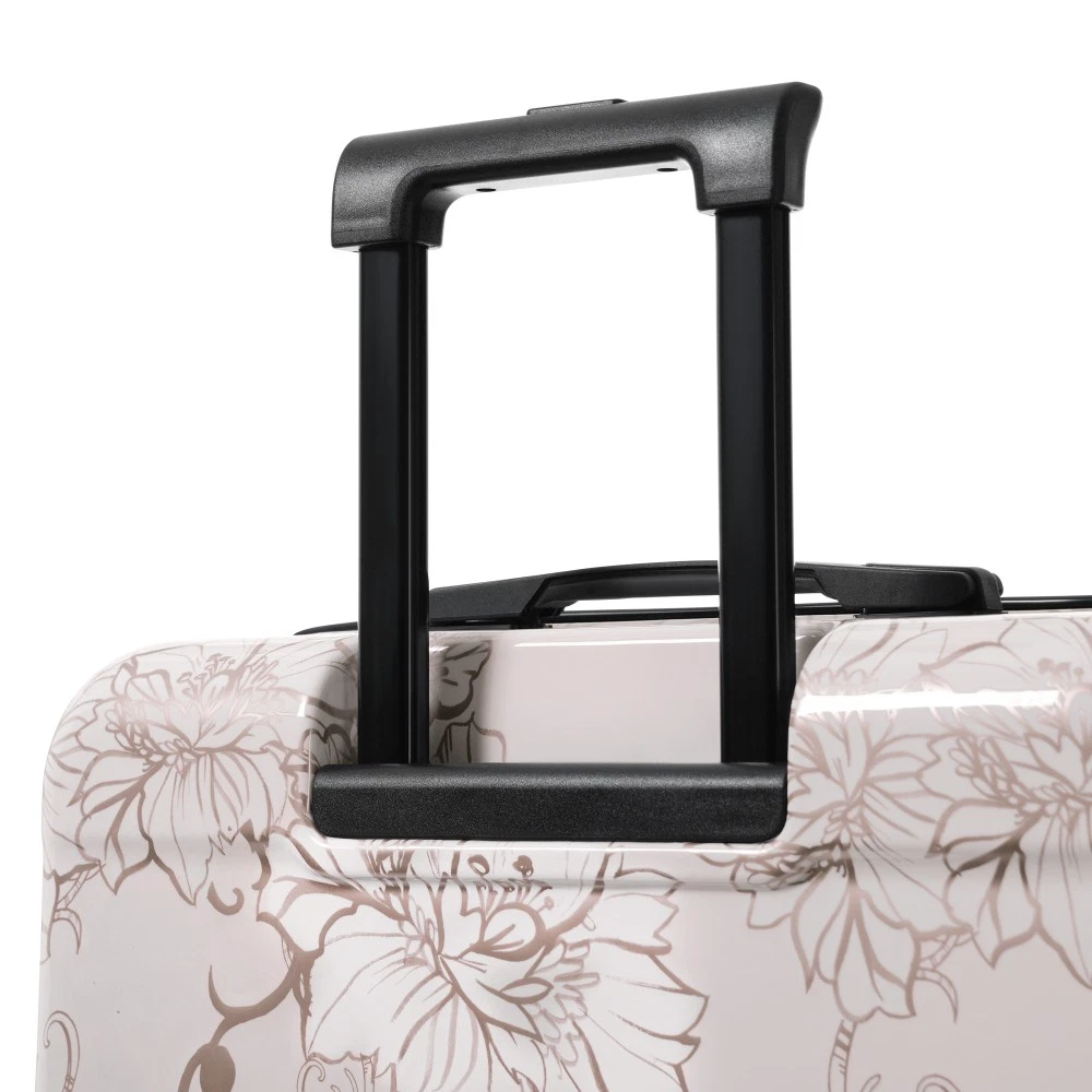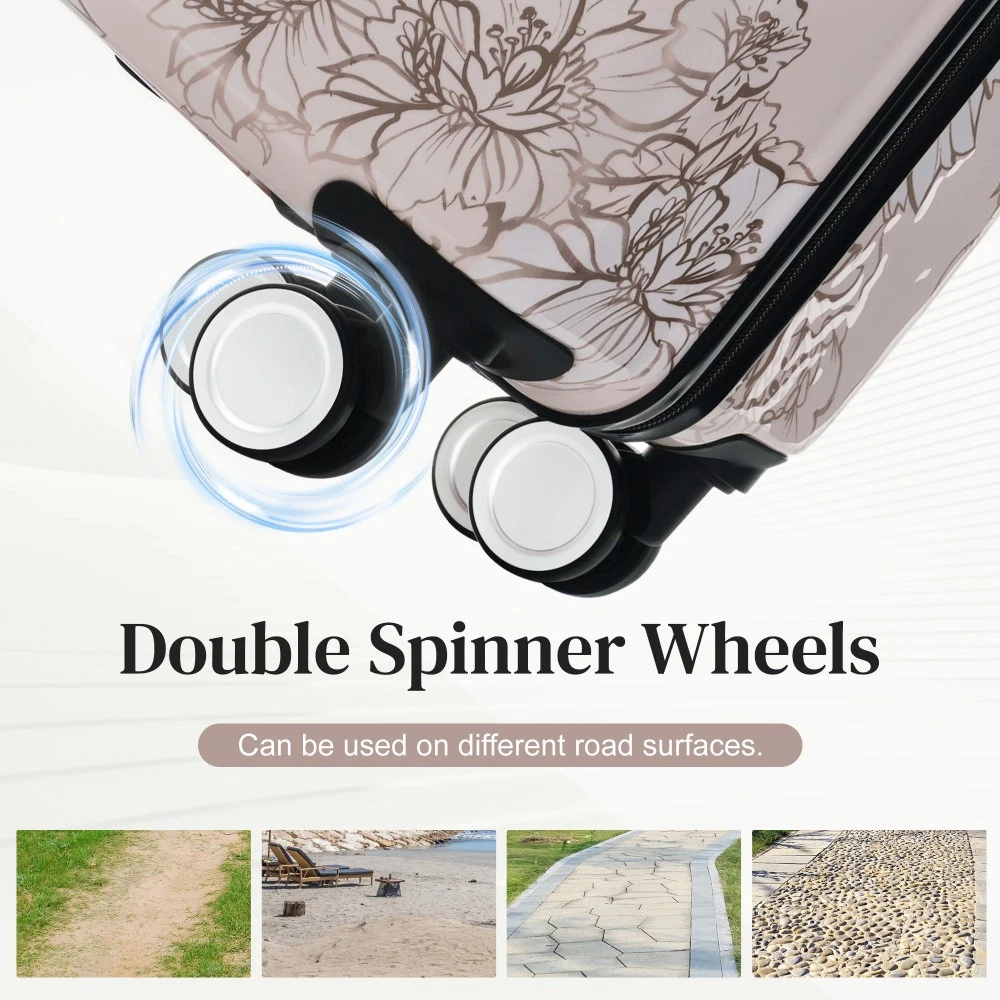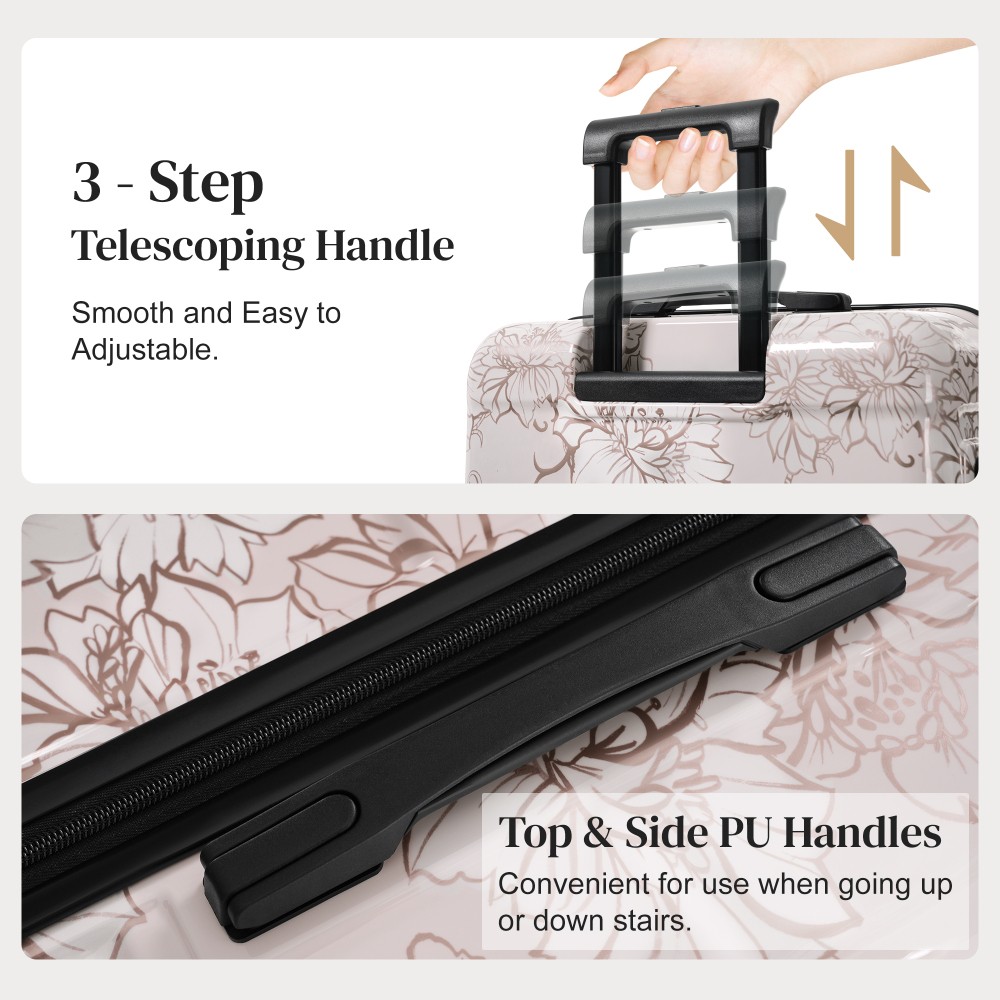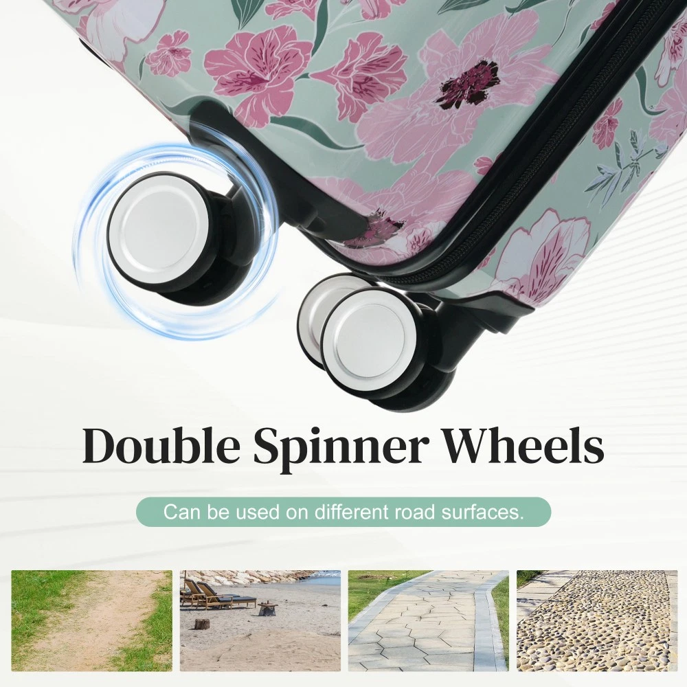 5PCS Luggage Set, PC+ABS Hardside Lightweight Suitcase with Cosmetic Case, Handbag, Spinner Wheels & Lock, Pink Flower (8"14"20"24"28") Elevate your travel experience with this stylish and practical 5-piece luggage set! Adorned with a vibrant pink flower print, this set blends summery charm with exceptional functionality, making you a fashion standout wherever you go. It includes all the travel essentials you need for different trips, from short getaways to long vacations, perfectly meeting your diverse travel demands. Complete 5-Piece Set for All Travel Needs : This set comes with 5 essential pieces: an 8" handbag, a 14" cosmetic case, and 20", 24", 28" suitcases. Whether you're heading for a weekend trip (20" carry-on size), a business trip (24" medium size), or a long vacation (28" large size), this one set has you covered. The handbag and cosmetic case are ideal for storing personal items and beauty essentials, keeping your belongings organized and easily accessible. Durable PC+ABS Hardside Construction : Crafted from high-tenacity PC+ABS material, these suitcases are harder and more pressure-resistant, effectively reducing damage caused by collisions during travel. The hardside design not only provides reliable protection for your belongings but also ensures long-lasting durability, making the set suitable for frequent travel use. Lightweight construction also eases the burden of carrying and transportation. Protective Film for Scratch Prevention : Each suitcase is covered with a protective film that can be removed before first use. This film effectively prevents scratches and bumps during shipping and transportation, ensuring your new luggage arrives in perfect condition and maintains its sleek appearance for a long time. Safe & Secure Design : Equipped with a side-mounted digital combination lock, the suitcases eliminate the trouble of losing or forgetting keys. You can set a personalized password to keep your belongings safe and protect your privacy. Additionally, the high-quality zippers are not easy to be pierced by sharp tools, providing an extra layer of security for your valuables. Easy to Carry & Maneuver : The suitcases feature soft silicone handles, making it easier to lift them when going up and down stairs or loading/unloading. The sturdy 3-step telescoping handle allows for effortless maneuvering in tight spaces like airports or train stations. Moreover, both the handbag and cosmetic case come with shoulder straps, enabling crossbody wear for hands-free convenience during travel. How to Set the Combination Lock : 1. Open the lock (the default combination is 0-0-0). 2. Push the adjusting sheath in the direction of the arrow. 3. Turn the number wheels to set your desired secret code (don't forget it!). 4. Turn the adjusting sheath back to its original position. Your personalized combination will then take effect. Key Product Specifications : Color: Pink Flower; Material: PC+ABS; Product Type: 5-Piece Luggage Set; Included Pieces: 8" Handbag, 14" Cosmetic Case, 20" Suitcase, 24" Suitcase, 28" Suitcase; Assembled Dimensions (28" Suitcase): 18.10"L × 11.00"W × 29.50"H; Overall Product Weight: 24.97 LBS; Package Dimensions: 30.31"L × 19.88"W × 11.61"H; Package Weight: 27.89 LBS. Worry-Free Purchase Guarantee : We stand behind the quality of this 5-piece luggage set with a 1-Year Warranty. If you’re not completely satisfied with your purchase for any reason, we offer a 30-Day Free Return & Exchange Policy. Shop with confidence, knowing you’re getting a stylish, durable, and functional travel companion!