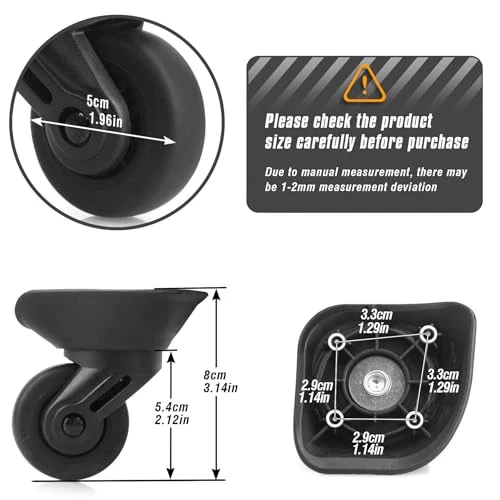 Menu 1. We require immediate payment. 2. We currently accept payment via eBay managed payments only. 3. Once payment is cleared, we will dispatch your shipment within 1-3 business days. Please refer to the "Shipping" tab for more information regarding shipping speed to your destination. Luggage Wheels Replacement 2 pcs Suitcase Replacement Wheels Wear-Resistant Luggage Wheels Carry On Spinner Wheels (ZA-73) Product description Material of these luggage wheels replacement: PVC + PP + Bearing,strong and wear-resistant Size of the suitcase wheel:As show in photo 2 ;Please check the SIZE details of the wheels carefully——Especially the size of the wheel and the distance between screw holes.The wheel is NOT universal,different size is suitable for different suitcase Packing list :2 pcs luggage wheels, as photo shown and comes with screws Product features: wear resistant ,only suitable for repairing worn wheels with the same hole pitch and shape,and need you have a strong ability in DIY If you are not sure whether these luggage wheels are suitable for your suitcase, you can send us some pictures about the original wheel and screw side by email,Pls also tell us screw holes distance,we will give you some suggestions. Thanks very much. PLEASE MESSAGE US IF YOU HAVE ANY OTHER QUESTIONS, AND MANY THANKS FOR READING ALL OF THIS. Copyright ©#. All Rights Reserved.