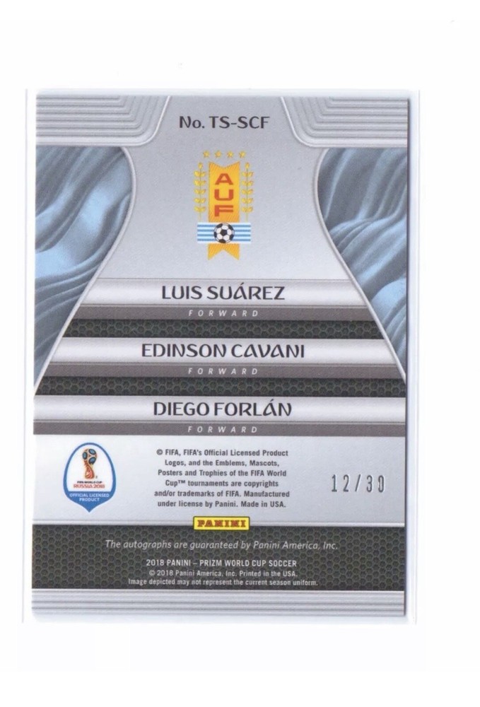 Luis Suarez Edinson Cavani Diego Forlan Panini Prizm World Cup 2018 Auto /30