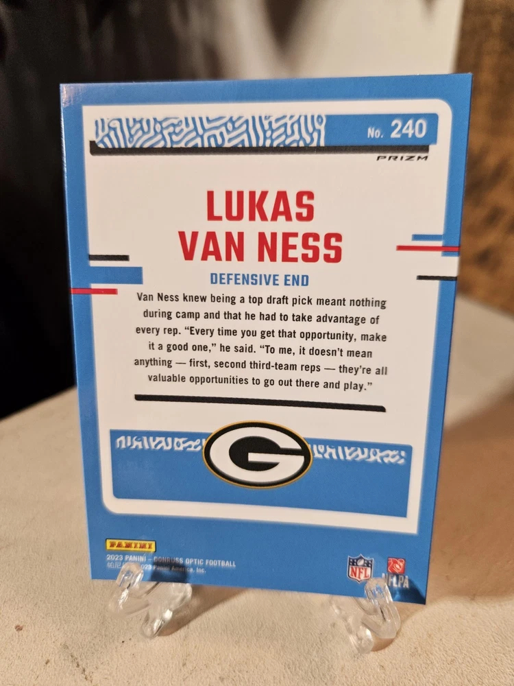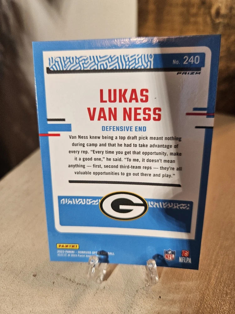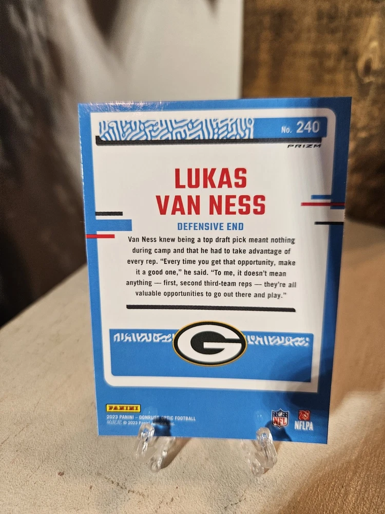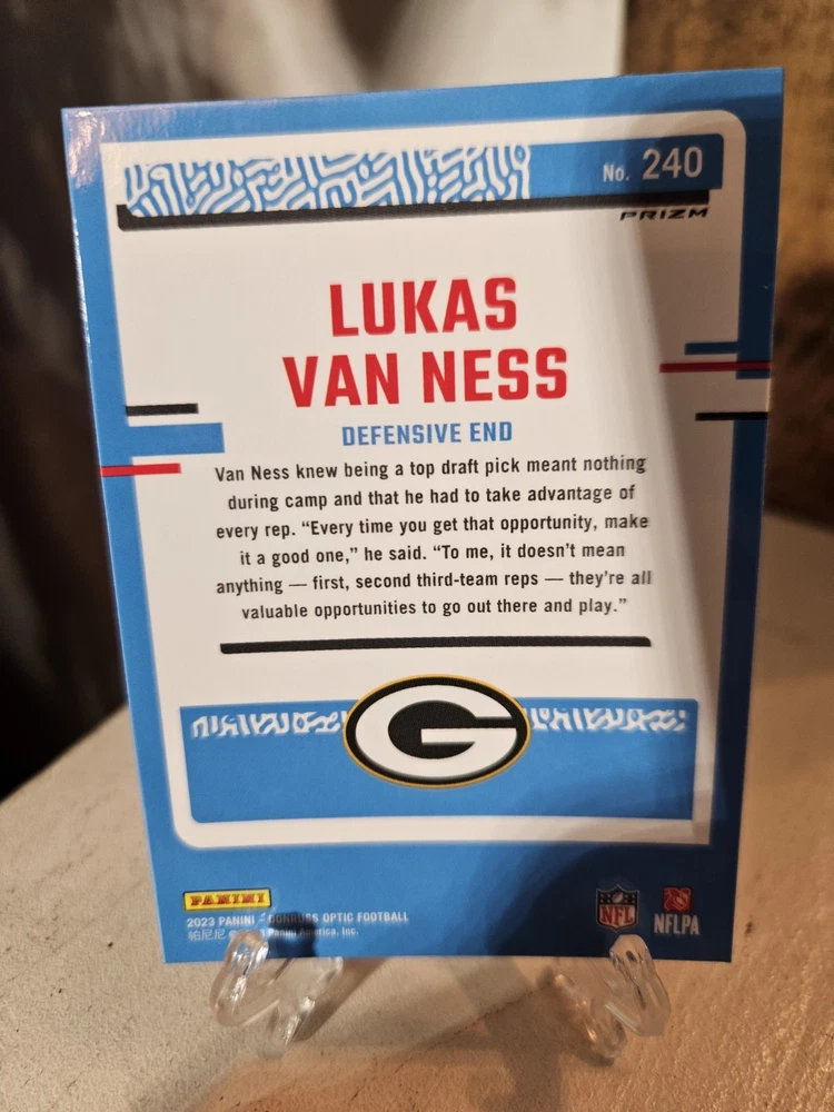 Lukas Van Ness Donruss Optic 6 Card Parallel Lot. Green Bay Packers. Condition is Used. Shipped with USPS Ground Advantage.