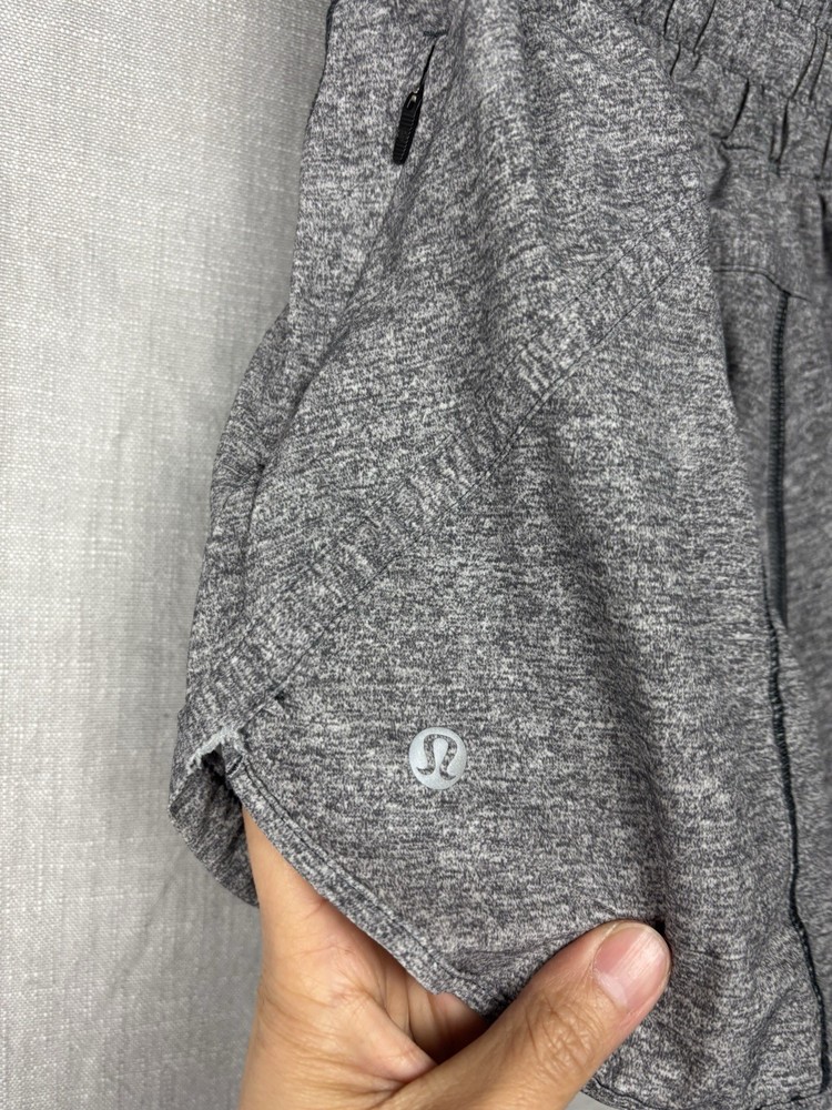 The Lululemon Hotty Hot Short in Gray, size 6, is a versatile and stylish pair of running shorts perfect for active women. With a comfortable elastic waistband and a convenient pocket design, these shorts offer both functionality and performance during workouts or outdoor activities. The 3-inch inseam and athletic style make them ideal for running, cycling, or other types of physical exercise. The gray color adds a classic touch to these activewear shorts, making them a great addition to any women's athletic wardrobe.