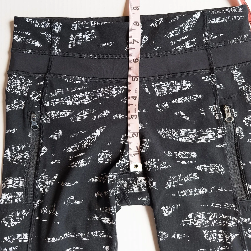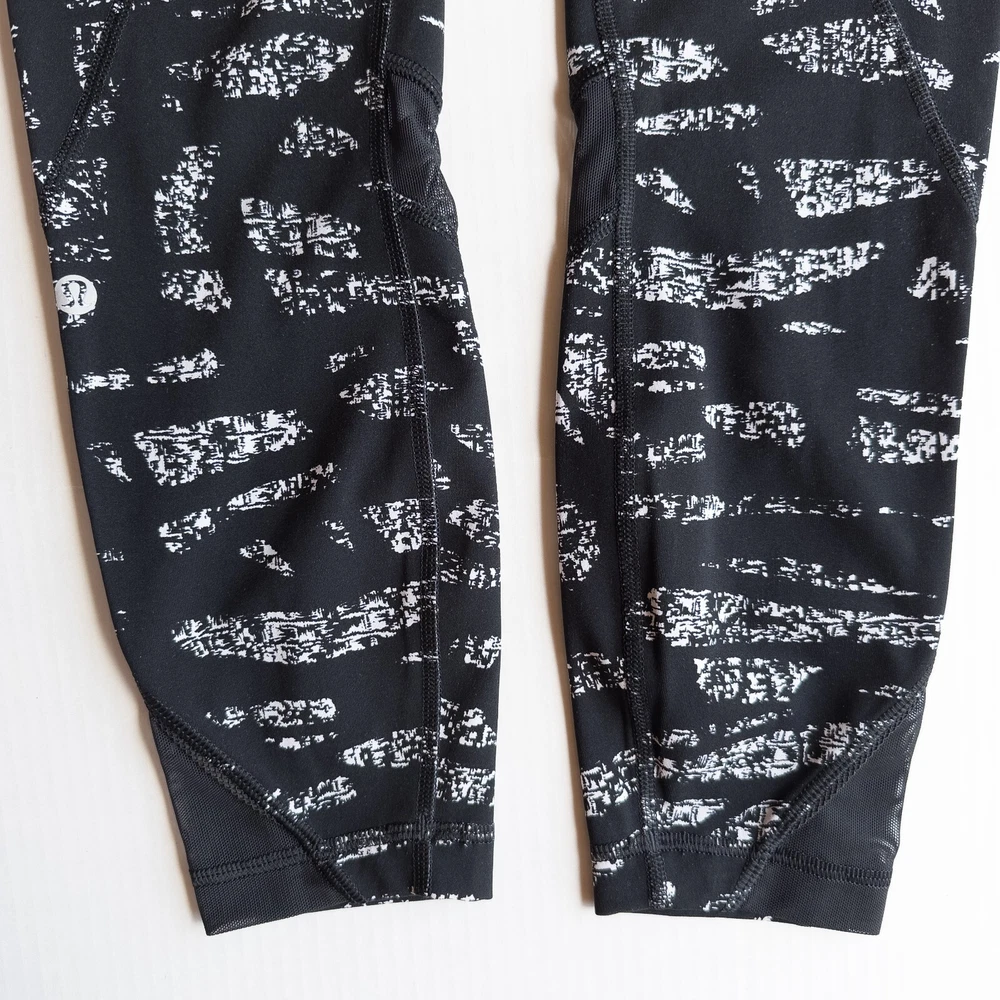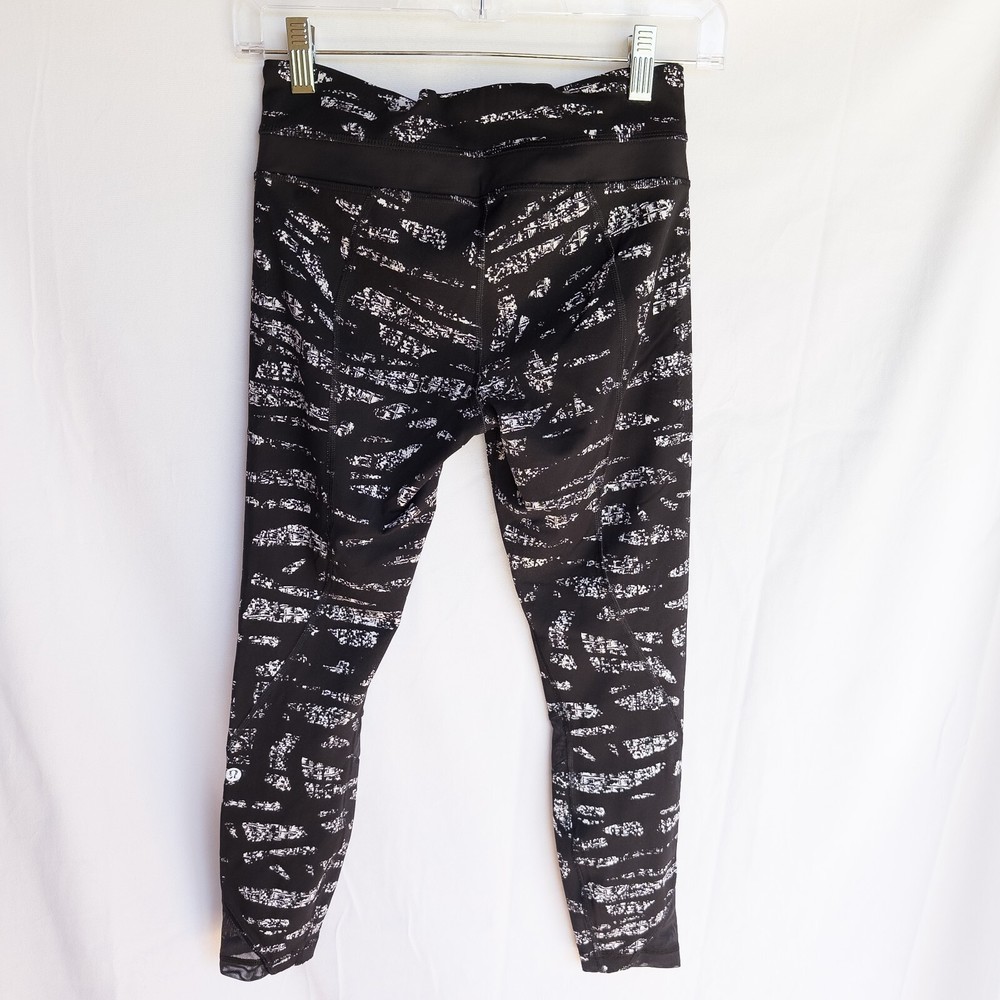 Lululemon Inspire Tight II * Condition: Great pre-owned condition. The rip tag is well-worn but the leggings are in great condition. There are no stains, holes, or major signs of wear. Please see photos. * Size: 4 * All measurements are approximate and taken lying flat unless otherwise noted. Please see photos as well. * Waist: 13” across * Inseam: 22.5” * Rise: 8” * Color: Graf Black White/Black * Pattern: See photos * Material: Body: 69% Nyon, 31% Lycra elastane / Waistband Lining: 77% Nylon, 23% Lycra elastane / Mesh: 89% Nylon, 11% Elastane * Full-On Luxtreme fabric offers support, coverage, and a cool, smooth feel * Added Lycra for shape retention * Sweat wicking, lightweight, breathable * Four-way stretch * Mesh fabric panels on legs for extra ventilation * 7/8 length * Internal continuous drawcord to adjust fit * Two hidden pockets in waistband * Two side zip pockets * Style Number: W5LFHS * Machine Washable Style Profile: Athleisure, Athletic, Running, Activewear, Sport, Gym, Workout, Exercise, Training, Fitness, Lifting All of my items are stored in a smoke-free, dog-friendly home.