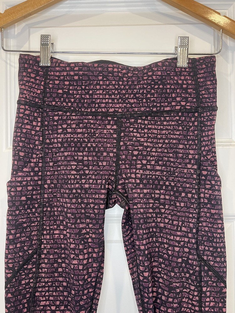 These Lululemon Speed Tight Leggings in Size 4 are a stylish activewear choice for women. Featuring a spotted pattern in a vibrant purple color, these leggings are designed for athletic performance with a compression fit and a skinny leg style. Made from a blended fabric, they offer stretch and have pockets for convenience. Ideal for activities like gym training, yoga, and running, these leggings are versatile for all seasons and are machine washable for easy care. Perfect for those seeking a high-quality and fashionable activewear option. Label tag removed**