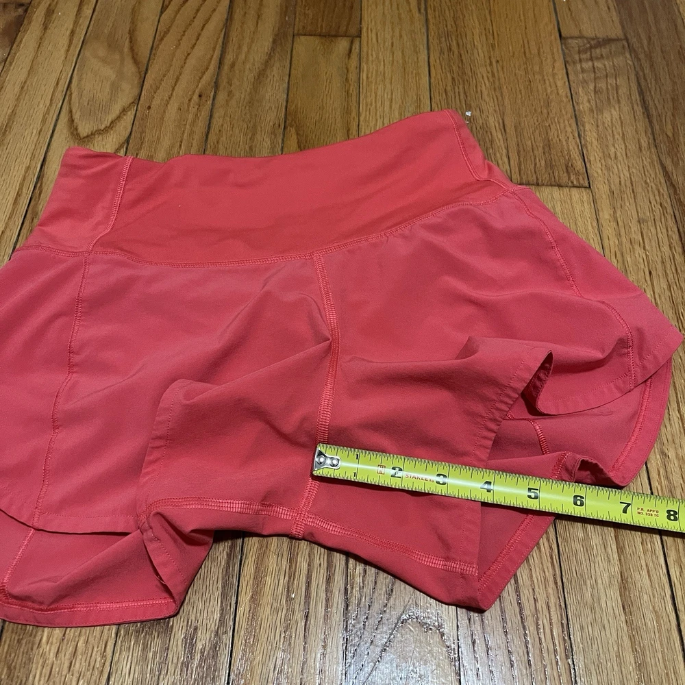 Lululemon Speed Up High-Rise Lined Short 4" in Pink Size 2 There was a name sticker on the inside of the shorts and there is sticker residue there. I think it came off in the wash and left some marks in other places, too. 15204