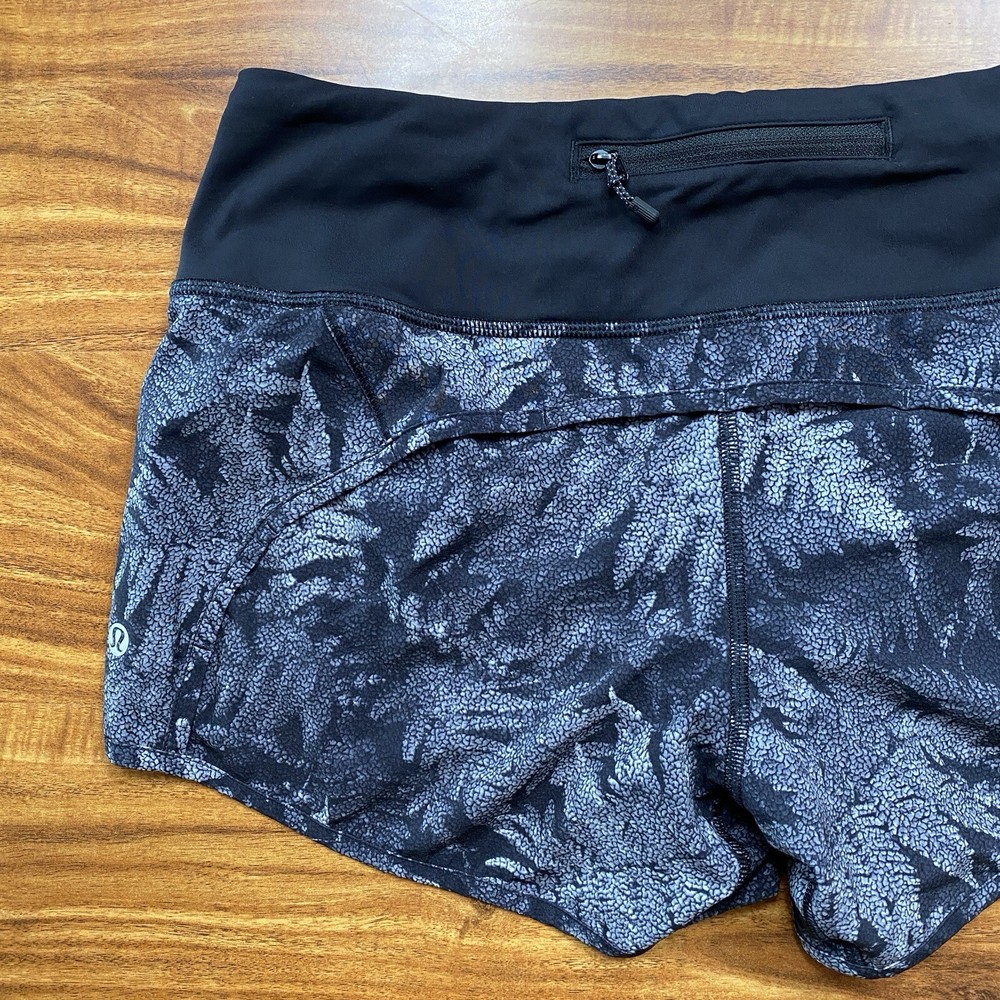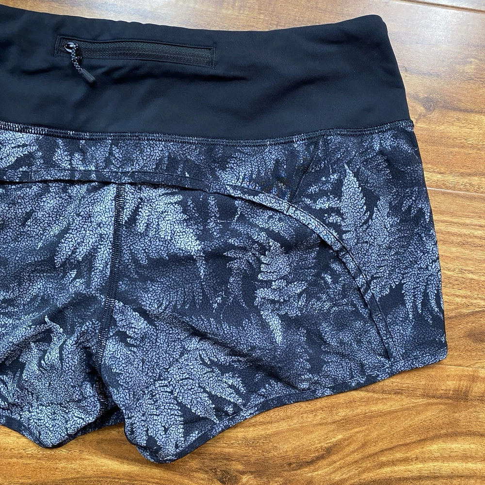 Lululemon Run Speed Shorts Size 2 Black Floral with Color Block Waistband