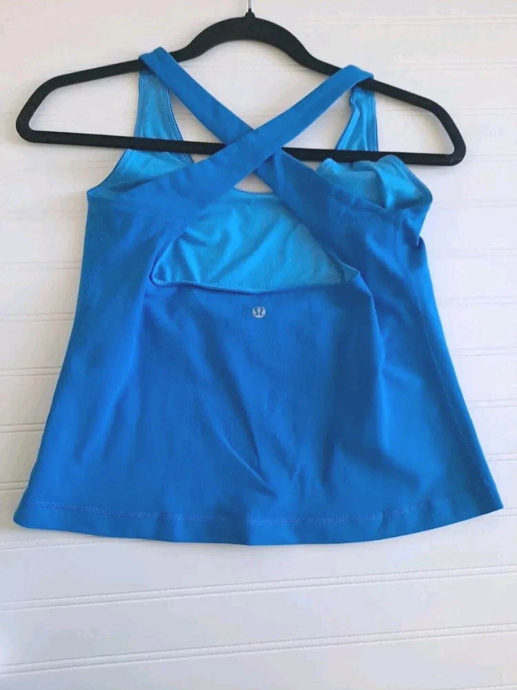 Lululemon Athletica Blue Workout Top Gym Excercise Top Size 10 outdoors hiking jogging fit No smoking/pet zone
