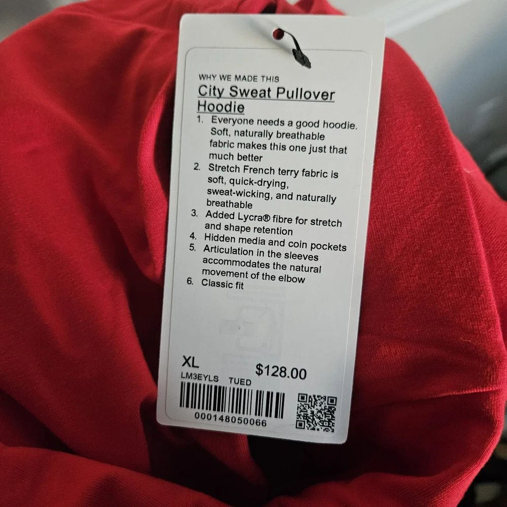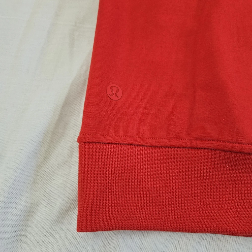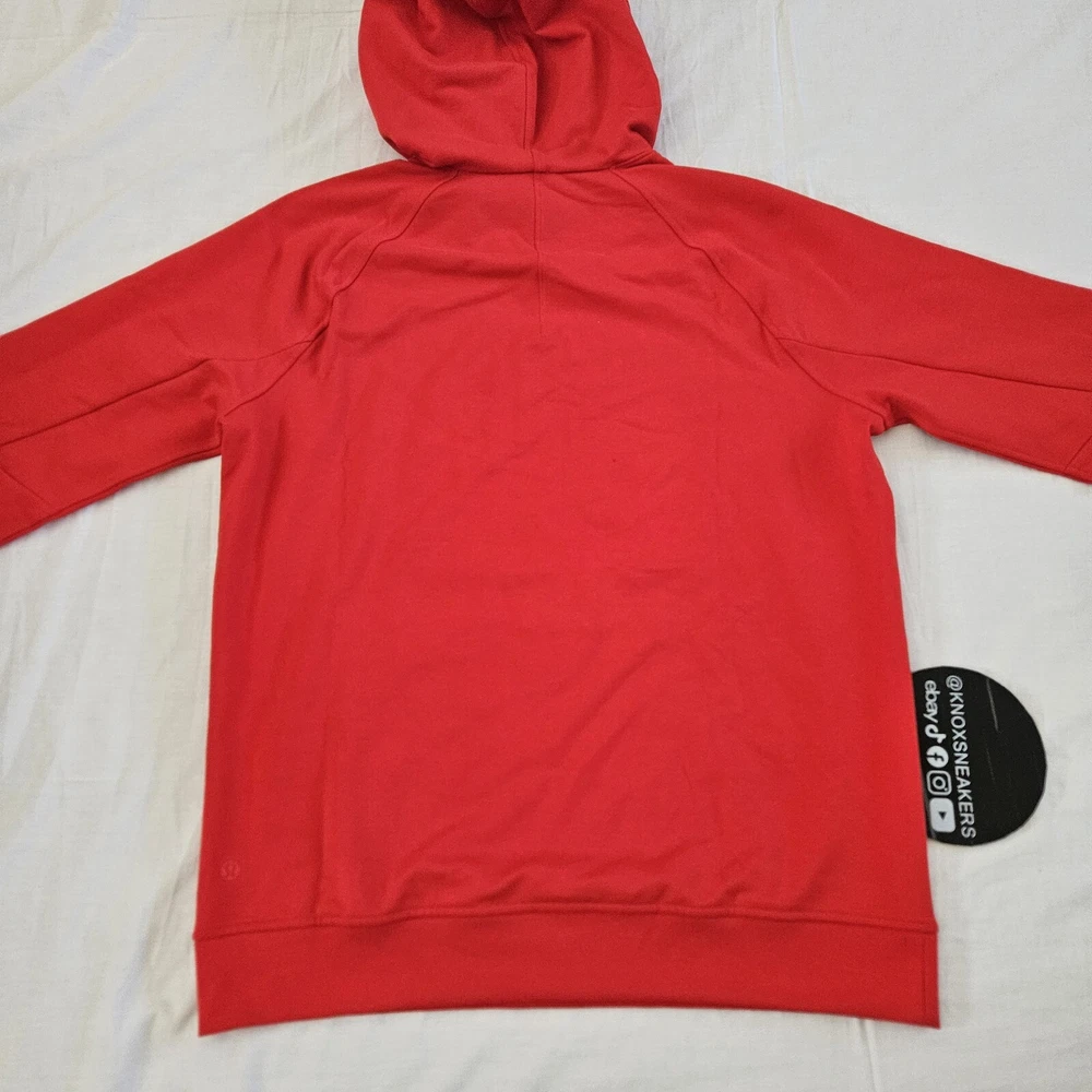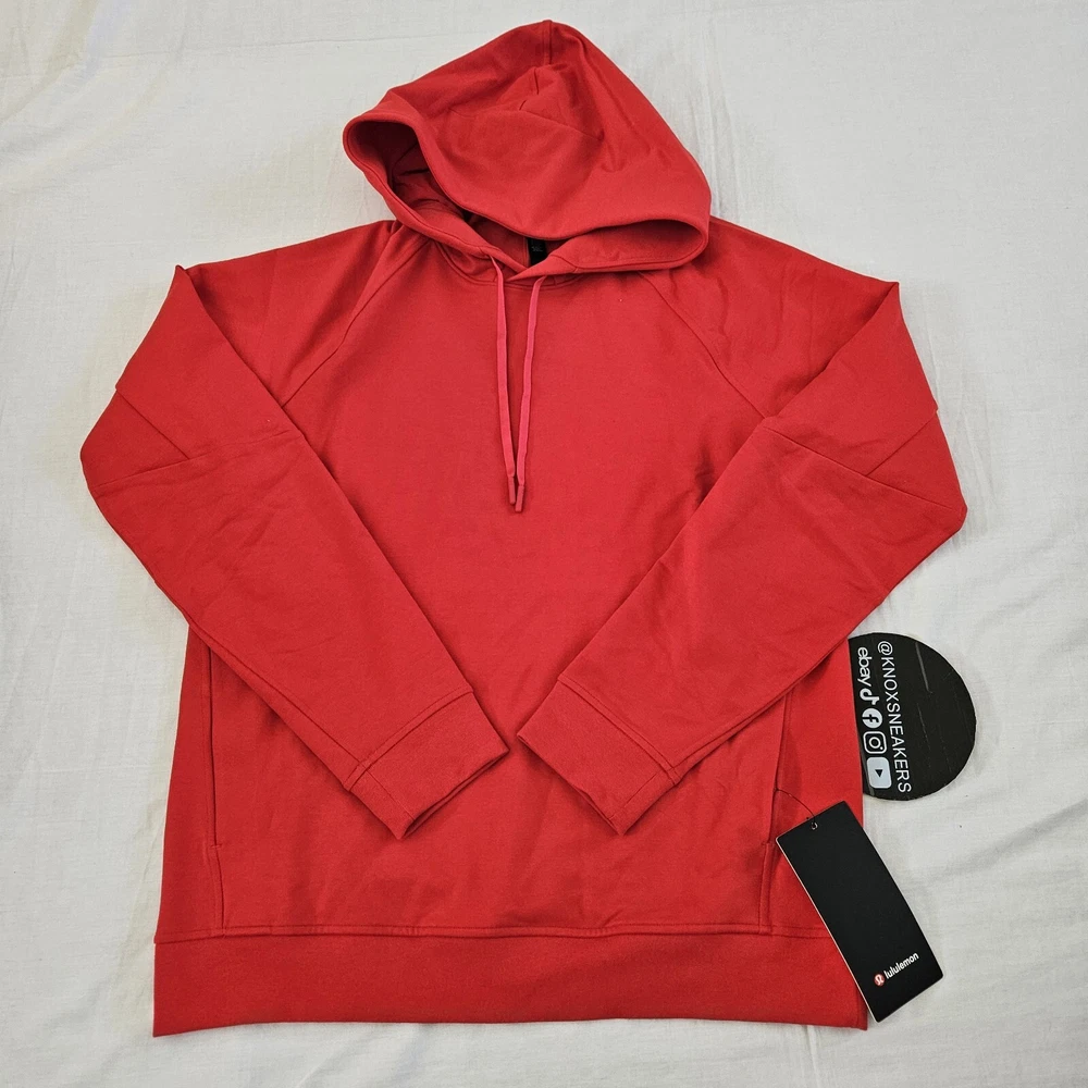 Elevate your activewear game with this Lululemon City Sweat Pullover Hoodie Sweatshirt in TUED True Red. This hoodie is perfect for any sports or city activity and features a drawstring closure, embroidered logo, and pockets. The cotton blend material with jersey fabric type and stretch features make it comfortable to wear in all seasons. The hoodie is designed with a solid pattern and features a hood for added protection during outdoor activities. The Lululemon City Sweat product line ensures that you get the best quality in activewear. This hoodie is perfect for men who are into gym and training, walking, cross-training, dance, yoga, pilates, running, and jogging. Brand new. With tags. Authentic.