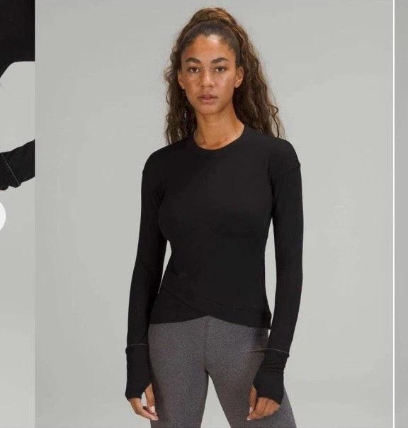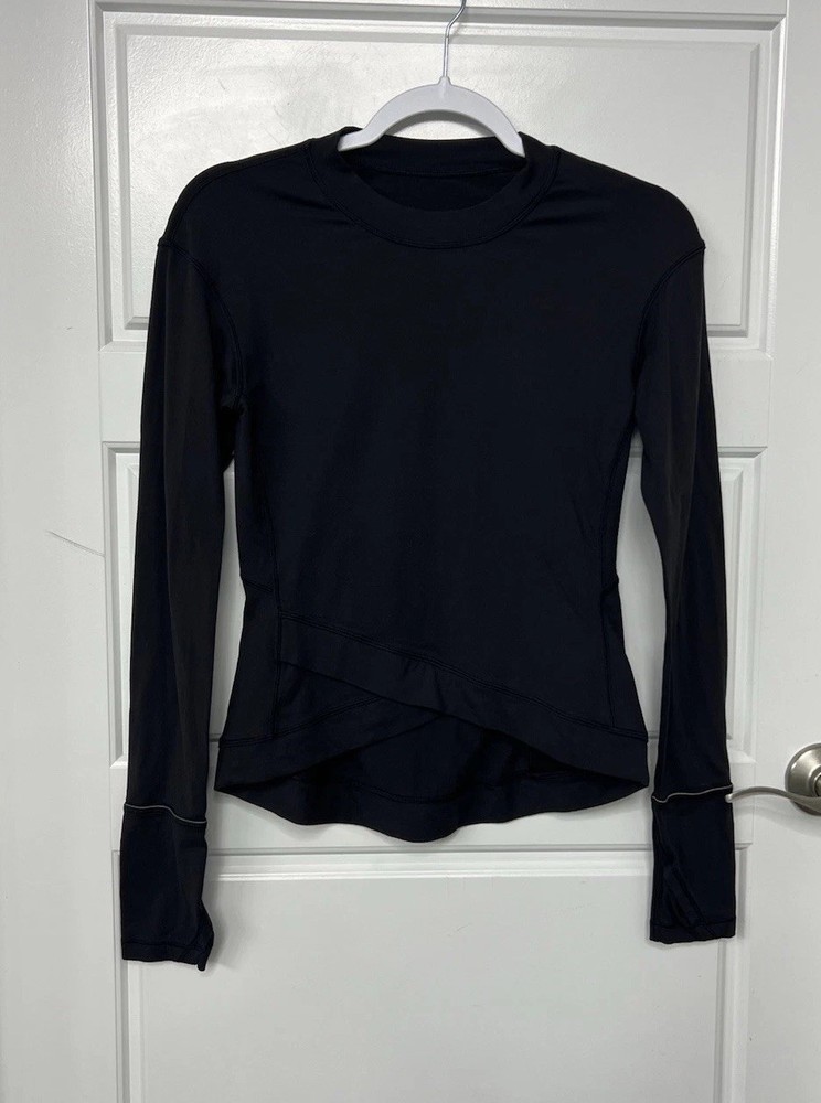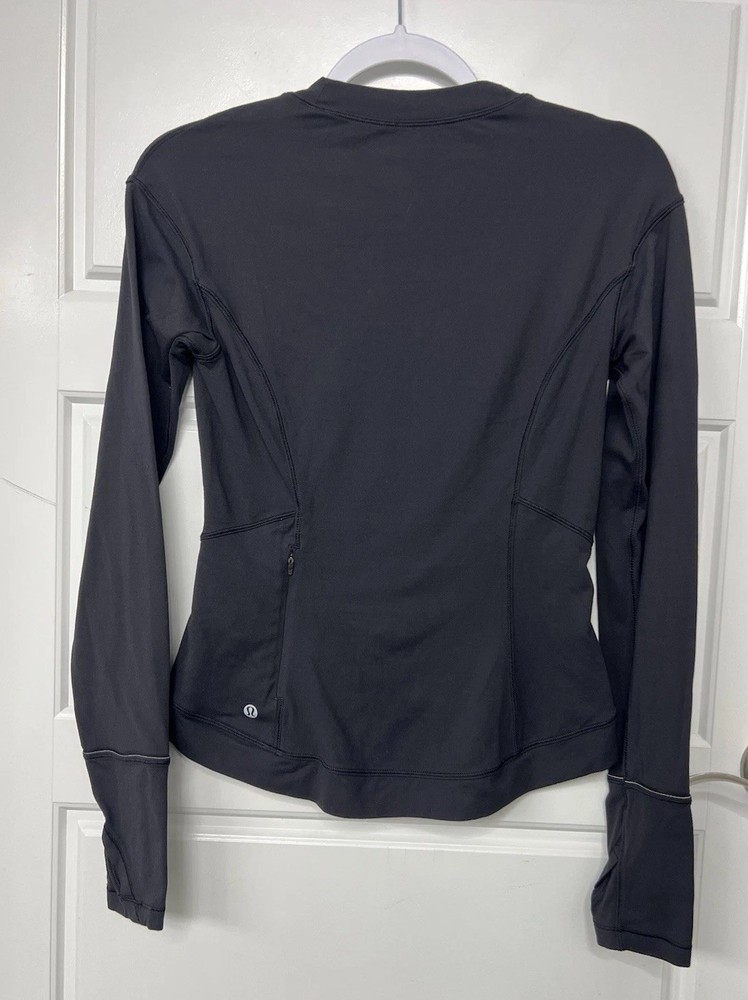 Lululemon Close to Crossing Long Sleeve Rulu Women’s size 4 Thumb holes Zip pocket Black Excellent condition!