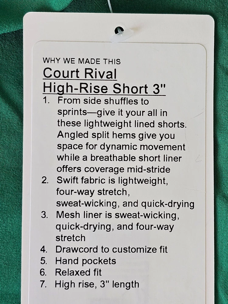 Brand: Lululemon Size: 6 Official Color: RCGR/RNFG Condition: New With Tags Description: Court Rival High Rise Short 3" From side shuffles to sprints - give it your all in these lightweight lined shorts. Angled split hems give you space for dynamic movement while a breathable brief liner offers coverage mid-stride Swift fabric is lightweight, four-way stretch, sweat-wicking, and quick-drying Mesh liner is sweat-wicking, quick drying, and four-way stretch Drawcord to customize fit Hand pockets Relaxed fit High rise, 3″ length Authenticity Guarantee All our items are 100% authentic, guaranteed! Payment We accept all forms of payment through eBay Managed Payments. Please make payment promptly after purchasing or once the auction has ended. Shipping We provide Free Shipping to the USA. Items are shipped via USPS/Canada Post and are tracked. For Canadian shipments, we provide discounted shipping. We ship via Canada Post and are tracked. For International shipments, we provide discounted shipping, please refer to the shipping cost on the listing once you have chosen your country. Returns We allow up to 30 days for returns. Item must be in the original condition that was shipped to you including any tags attached. All returns must be shipped via postal service, not UPS, FedEx or any other courier service. Please note that we detail the color as accurately as possible in our description and we take many pictures to show the item at different angles. However, the actual colors may vary in person due to different monitors and their settings. Taxes & Duties As a registered business we are required to collect taxes. All Canadian shipments are subject to the tax of their province. Taxes are based on the item and shipping. International Buyer's are responsible for their country's taxes and duties. Powered by Infinato.