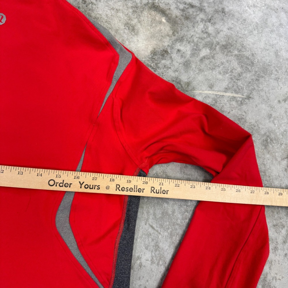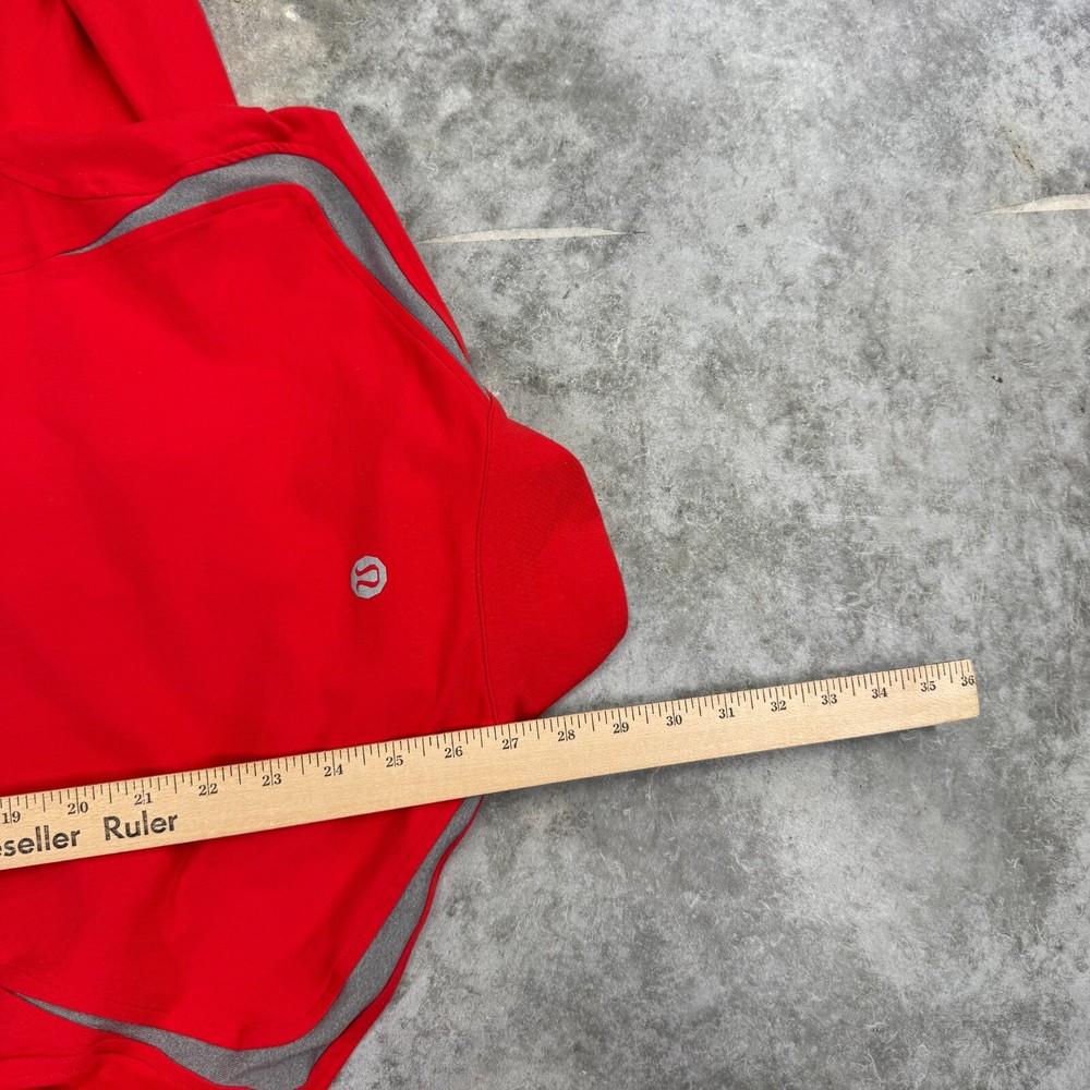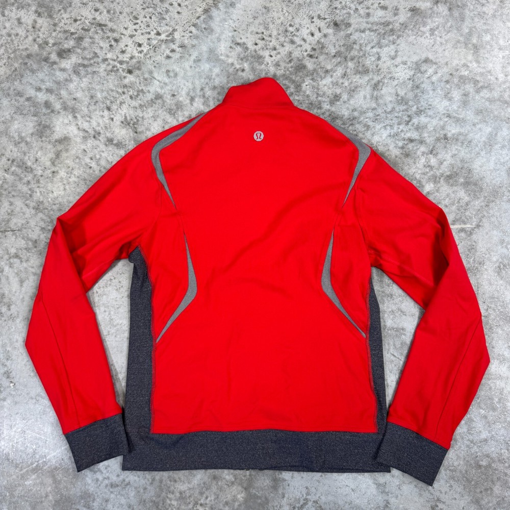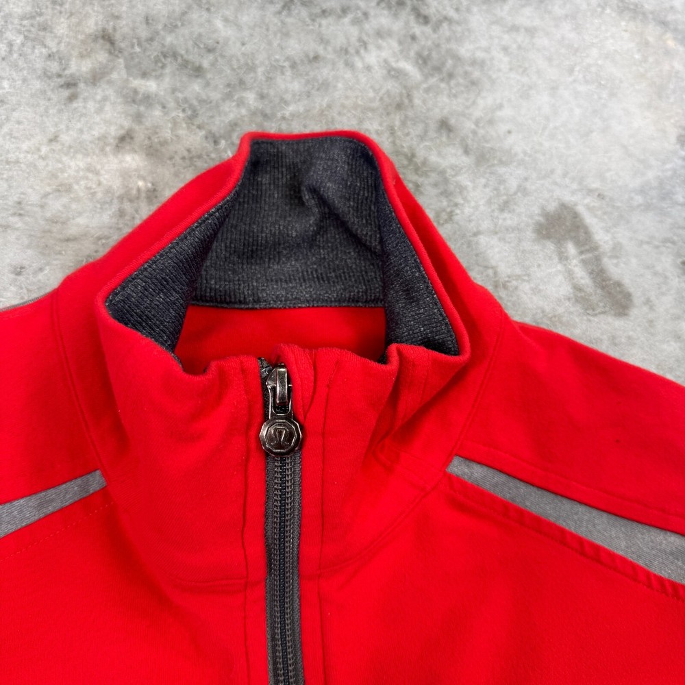 Performance/Activity: Walking Size: M Brand: Lululemon Vintage: No Fabric Type: Knit Fit: Regular Department: Men Pattern: Solid Accents: Logo, Zipper Features: All Seasons, Full Zip, Pockets, Stretch Personalize: No Color: Red Material: Polyester Season: Fall, Spring, Summer, Winter Type: Sweatshirt Size Type: Regular Style: Full Zip Character: lulu Garment Care: Machine Washable Neckline: High Neck Sleeve Length: Long Sleeve Theme: Outdoor Closure: Zip