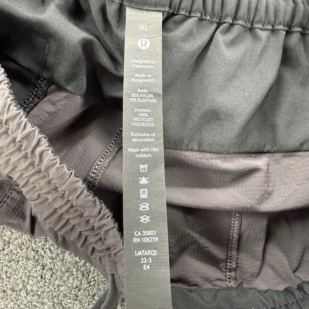 Size Type: Regular Personalize: No Waist Size: 34 in Fit: Athletic Inseam: 8 in Material: Polyester Handmade: No Closure: Drawstring Style: Athletic Size: XL Occasion: Activewear Department: Men Performance/Activity: Cross Training, Gym & Training, Running & Jogging Theme: Outdoor, Sports Vintage: No Compression Area: Waist Season: Spring, Summer Features: Breathable, Easy Care, Pockets, Stretch Brand: Lululemon Fabric Type: Blended Fabric Garment Care: Machine Washable Color: Purple Model: Bowline Ripstop Pattern: Solid Country of Origin: Bangladesh Character: Sport
