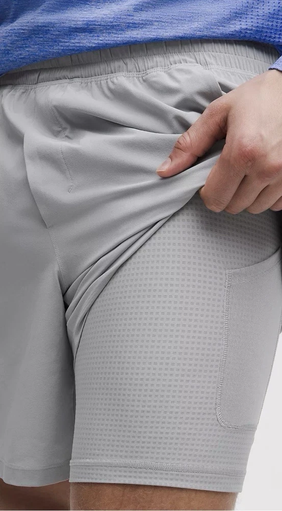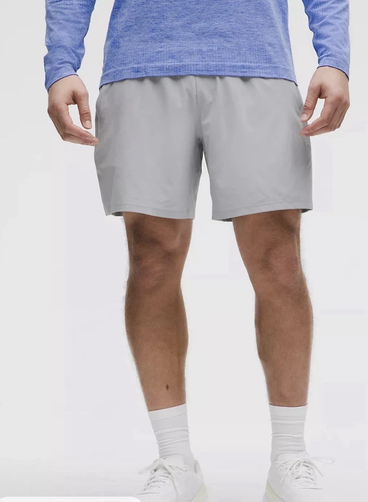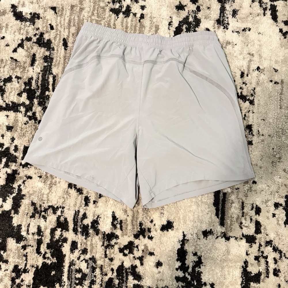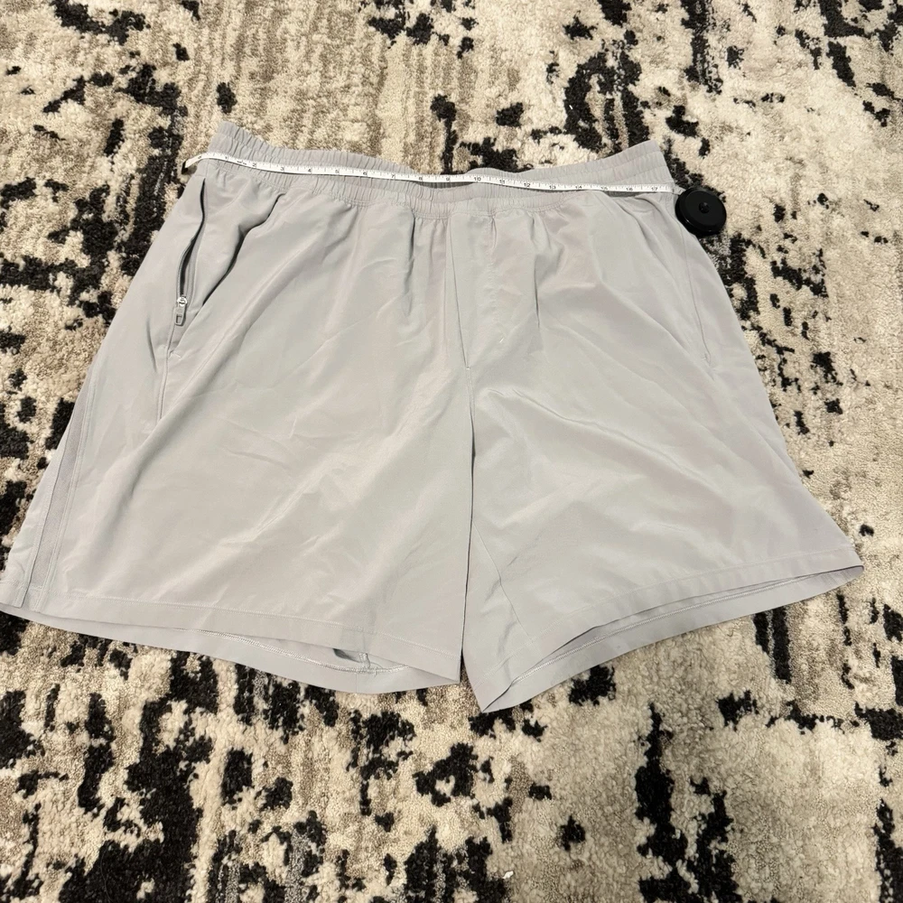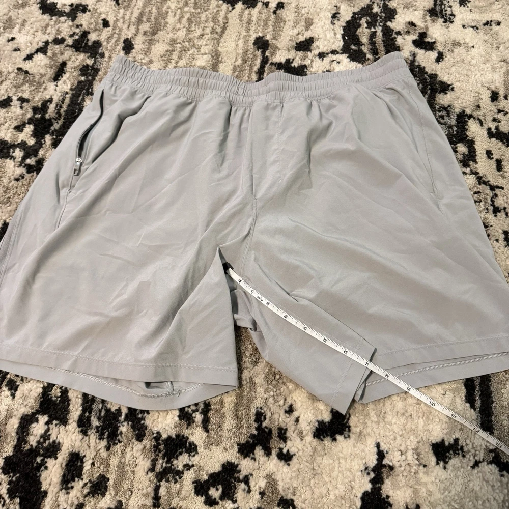 GUC. Men’s size XXL. Swift fabric. 18” waist. • Style: Pace Breaker shorts, lined and 7" inseam. The short are a light gray or "Silver Drop" color. • Features: They have deep side pockets and a secure, zippered pocket on the side for essentials like keys or a phone. $78 retail still on Lululemon website. *minor marks on front near pocket and back near logo*