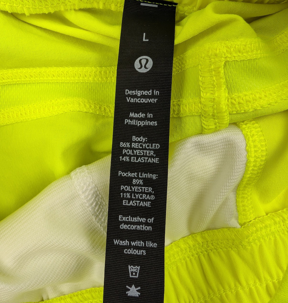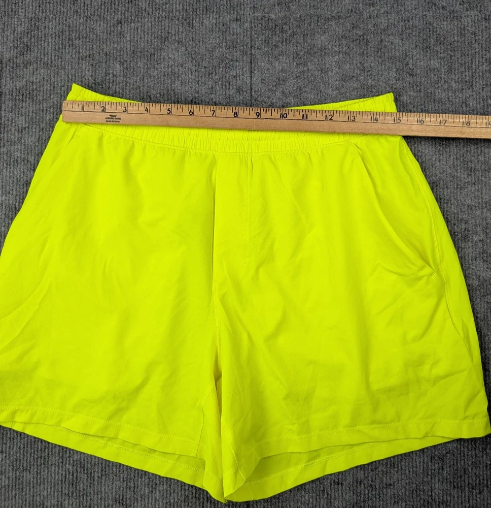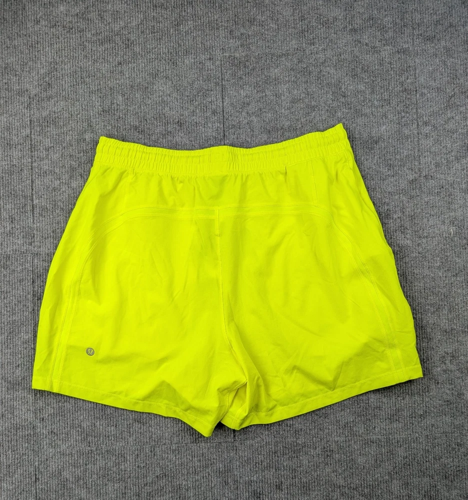 Brand: Lululemon Type: Athletic Shorts Department: Men Size: Large Color: Neon Yellow Style: Activewear Fit: Regular Material: Lightweight Performance Fabric Features: Elastic Waist, Breathable, Pockets Occasion: Running, Training, Gym, Casual Pattern: Solid Condition: Pre-owned