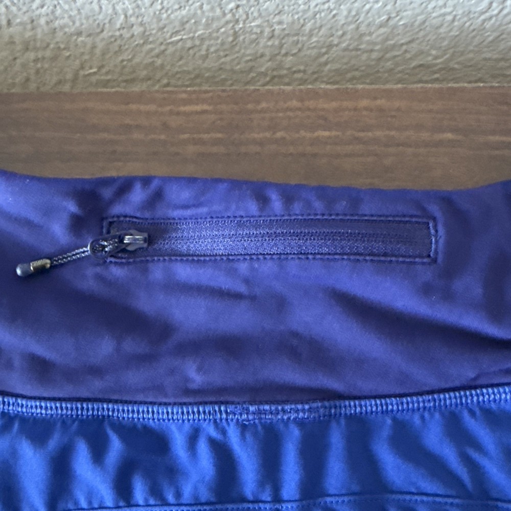 The product is a pair of Lululemon shorts for women in size 8, designed for athletic activities such as running, gym training, and cross training. The shorts are a solid blue color, featuring a 4-inch inseam and the brand's logo as a theme. Made for outdoor sports, the shorts are versatile and suitable for various physical activities, making them a practical and stylish choice for active women on the go.