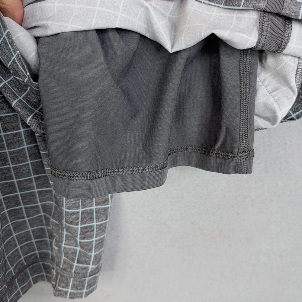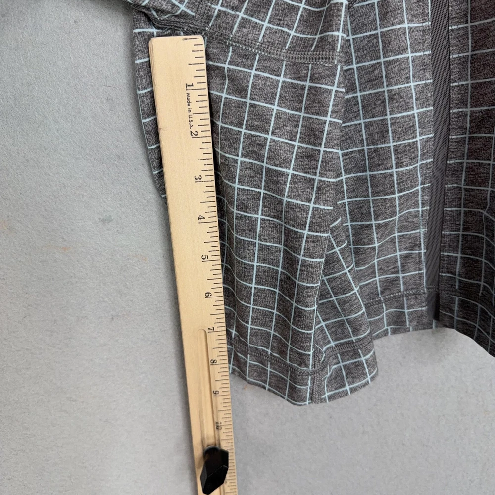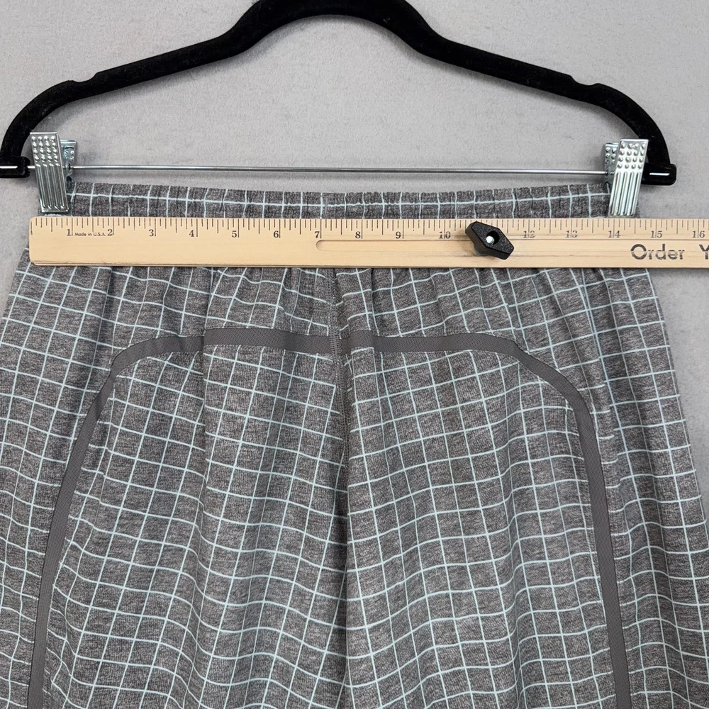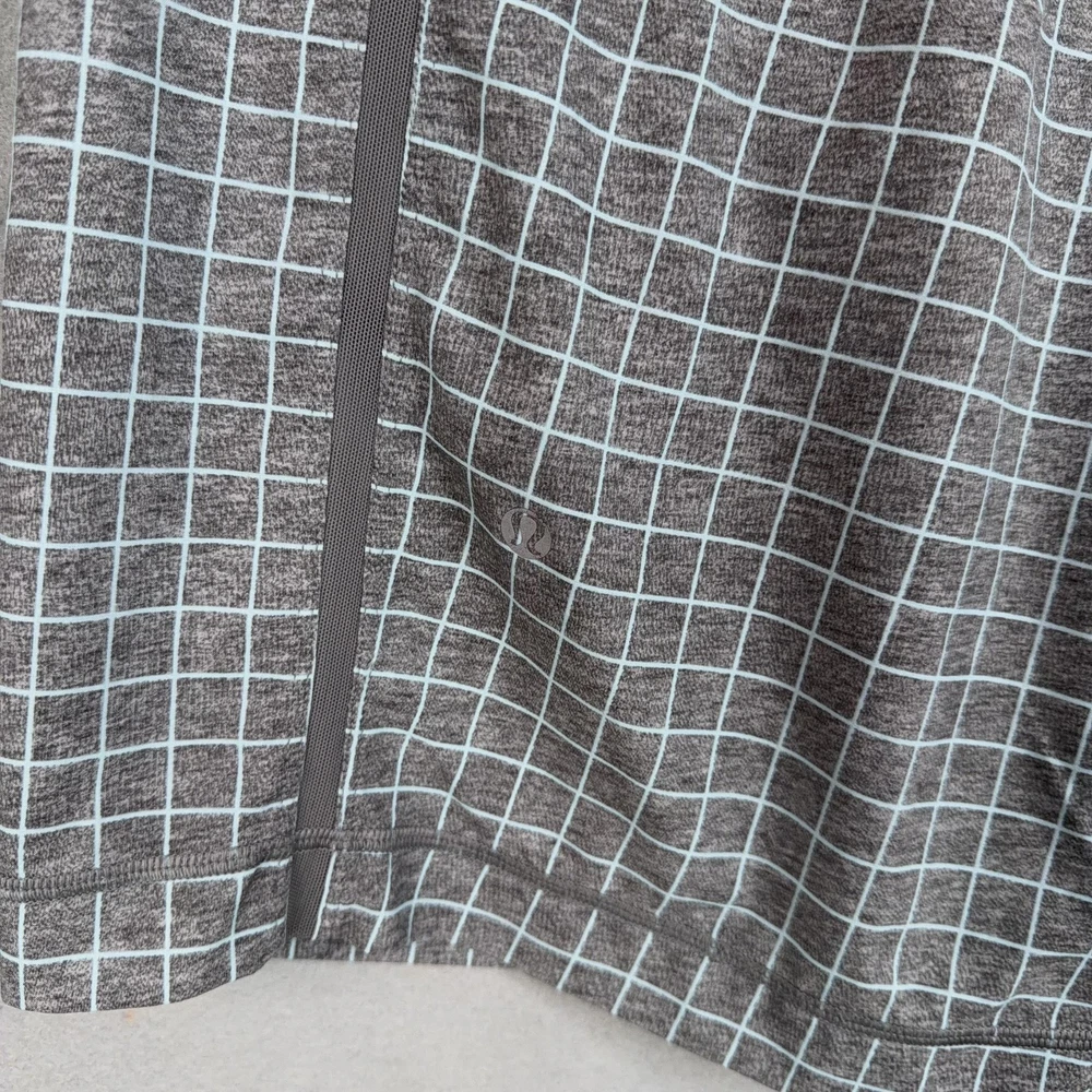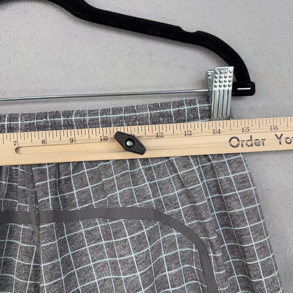 Lululemon Shorts Mens Medium Gray Check Running Athletic Lined Pre-owned Lululemon athletic shorts with light overall wear from prior use. Fabric is clean and intact with no holes or tears, and the grid print remains crisp throughout. Elastic waistband, drawstring, inner liner, and zip pockets are structurally sound with zippers and stitching secure. Reflective Lululemon logo at the back leg is clear; no original packaging or hangtags included. Brand: Lululemon. Style: Mens lined athletic running shorts. Color: Heathered gray body with light grid check pattern and solid gray trim. Size: Mens Medium per circular interior size dot. Material: Performance knit fabric; fiber content not specified on visible labels. Fabric type: Lightweight jersey outer shell with smooth built-in stretch liner short. Details: Elastic waistband with internal drawstring, two front zip hand pockets, and straight hem leg openings. Features: Integrated inner liner for added coverage, breathable performance fabric for training, and secure zip pockets for small essentials. Branding and logos: Small Lululemon reflective logo on the lower back leg and size dot at the interior hem. Country of origin: Not listed on the available tags. Intended use: Designed for running, gym workouts, cross-training, and everyday athletic wear. Special notes: Allover grid check pattern adds visual interest to a versatile performance short. 25293 Measurements: Previous washings may change sizing on the tag. Refer to photos above for all measurements. Compare our measurements to one of your favorite garments. Measurements are approximate. All items are bagged and sealed after being photographed, then stored in a smoke free environment. Washed per eBay standards. I carefully package and ship daily. Contact me with any questions. Thanks