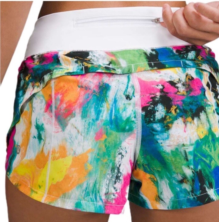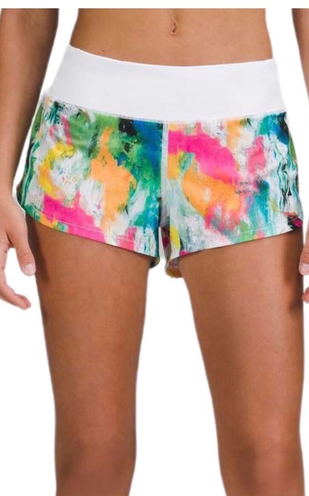 Elevate your workout wardrobe with these colorful Lululemon Speed Up Shorts. The athletic fit and low-rise design provide maximum comfort during cross-training or running sessions. The shorts are made of a blended fabric of polyester and feature a vibrant ikat pattern, perfect for a summer or spring workout. These women's shorts come in size 12 and have a 2.5-inch inseam, making them ideal for any active occasion. The Speed Up Shorts are lined for added comfort and durability, ensuring that you stay dry and comfortable throughout your workout. Add a pop of color to your activewear collection with these Lululemon shorts.