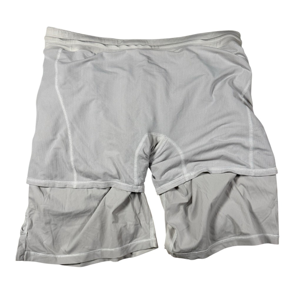 Condition: Good pre owned condition with no holes or tears noted. Fabric, liner, waistband, drawcord, and seams remain intact with light general wear. Description: Lululemon T H E Short with built in liner designed for training and high sweat workouts, featuring lightweight Swift fabric with four way stretch and sweat wicking performance, an Out of Mind liner made from quick drying mesh with built in support pouch and no bounce phone pocket, secure storage pocket with interior media pocket, and a generous cut for room through the hips and thighs; 9 inch inseam provides balanced coverage for gym and training use. Please review all photos carefully for overall condition and details.