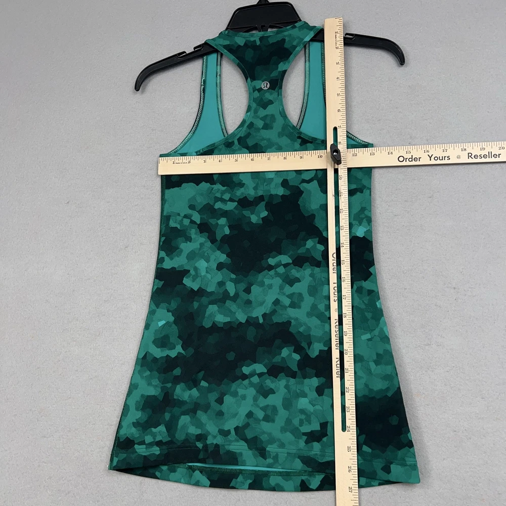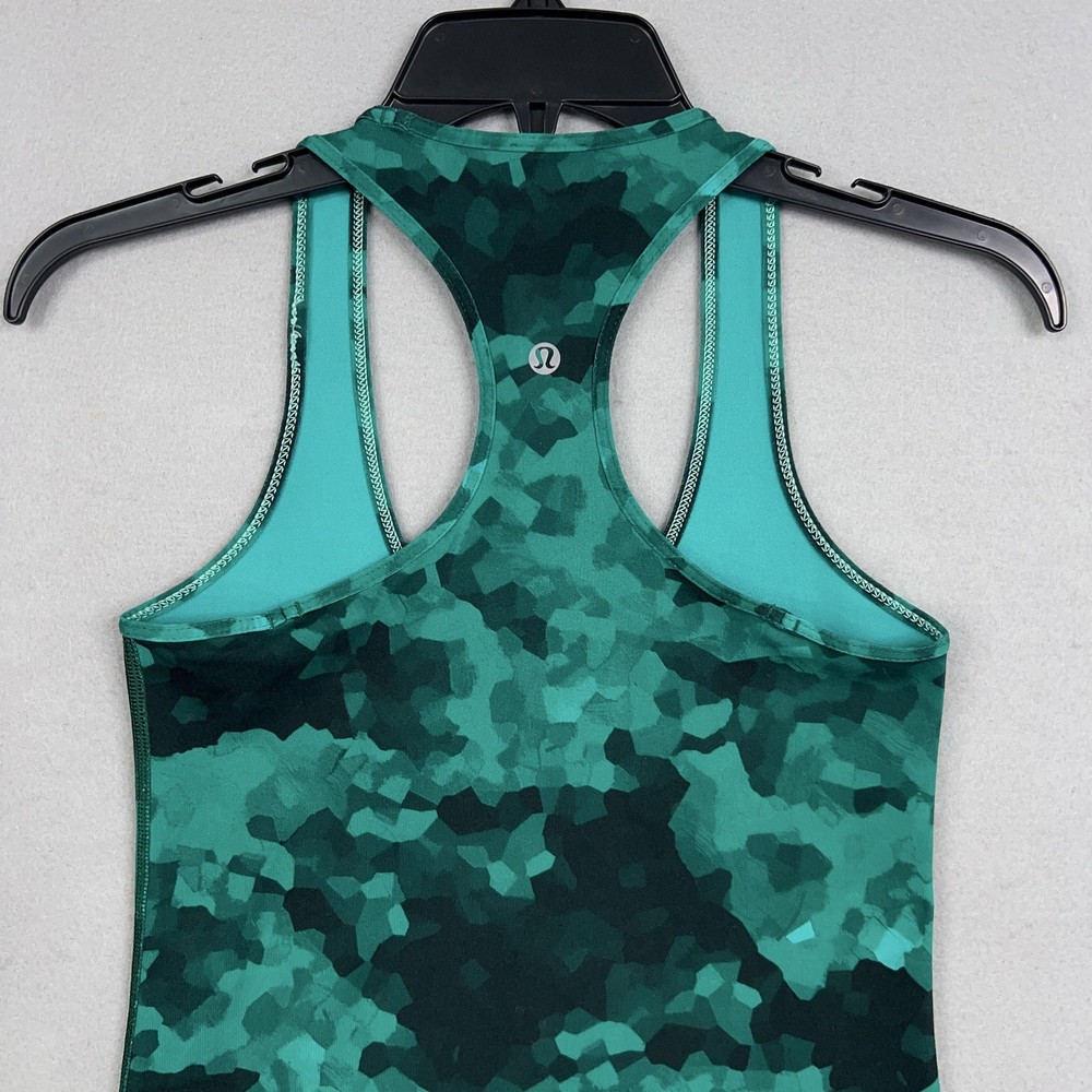 Light wear from normal use; no holes or stains observed. Size tag missing—estimated Womens 4 based on fit and photos. Brand: Lululemon Item: Athletic tank top Gender/Size: Womens estimated size 4 (size tag not present) Color/Pattern: abstract camo print Style Name: Cool Racerback (classic longline racerback silhouette) Design details: Scoop neckline; racerback; flatlock seams; stretchy performance knit Brand markings: Reflective Lululemon logo at upper back Fit notes: Size estimated by comparison to Lululemon size charts and shown fit in photos Special notes: See photos for fabric texture and overall fit details 22231 Measurements: - Previous washings may change the sizing written on the tag. - Please refer to the photos above for all measurements. - Please compare our measurements to that of one of your favorite garments. - Please note, item measurements are approximate . All items are bagged and sealed after being photographed, then stored in a smoke free environment to ensure the item is exactly the same as when photographed. All items have been washed per eBay standards & policies. I carefully package and ship daily. Feel free to contact me with any questions.