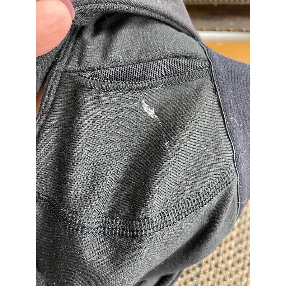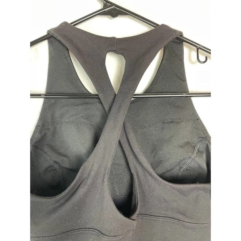 Lululemon Top Womens Black Sleeveless Tank Cross Strap Athletic Shirt Workout Size 4 Pit to Pit 13.5" Length 23" Good Condition has a spot on inside lining as shown in pictures but no other known flaws gym clothes, comfort,