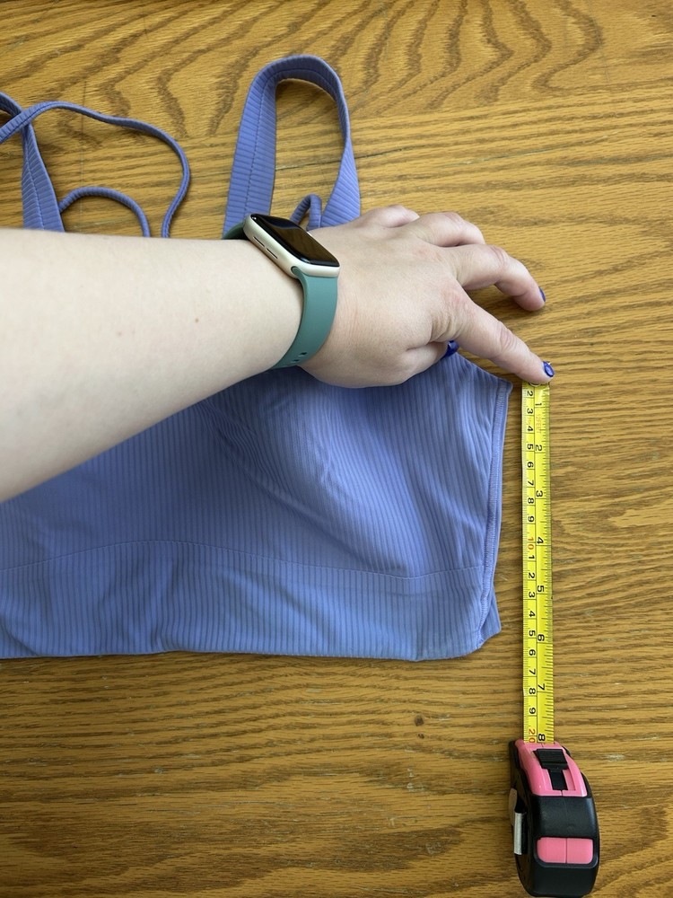 The Lululemon Women's Light Purple Athletic Sports Bra in Size Large is a stylish and functional activewear piece perfect for yoga or any other athletic activity. The crossback strap design provides added comfort and support, while the wireless underwire construction offers a seamless and breathable fit. Made from a blended fabric, this sports bra is machine washable for easy care and features the signature Lululemon logo accent. With full cup coverage and a regular size type, this bra is a versatile and practical choice for active women looking for a high-quality athletic top. I believe it is size M/L. Fits probably closer to a Large. Light purple