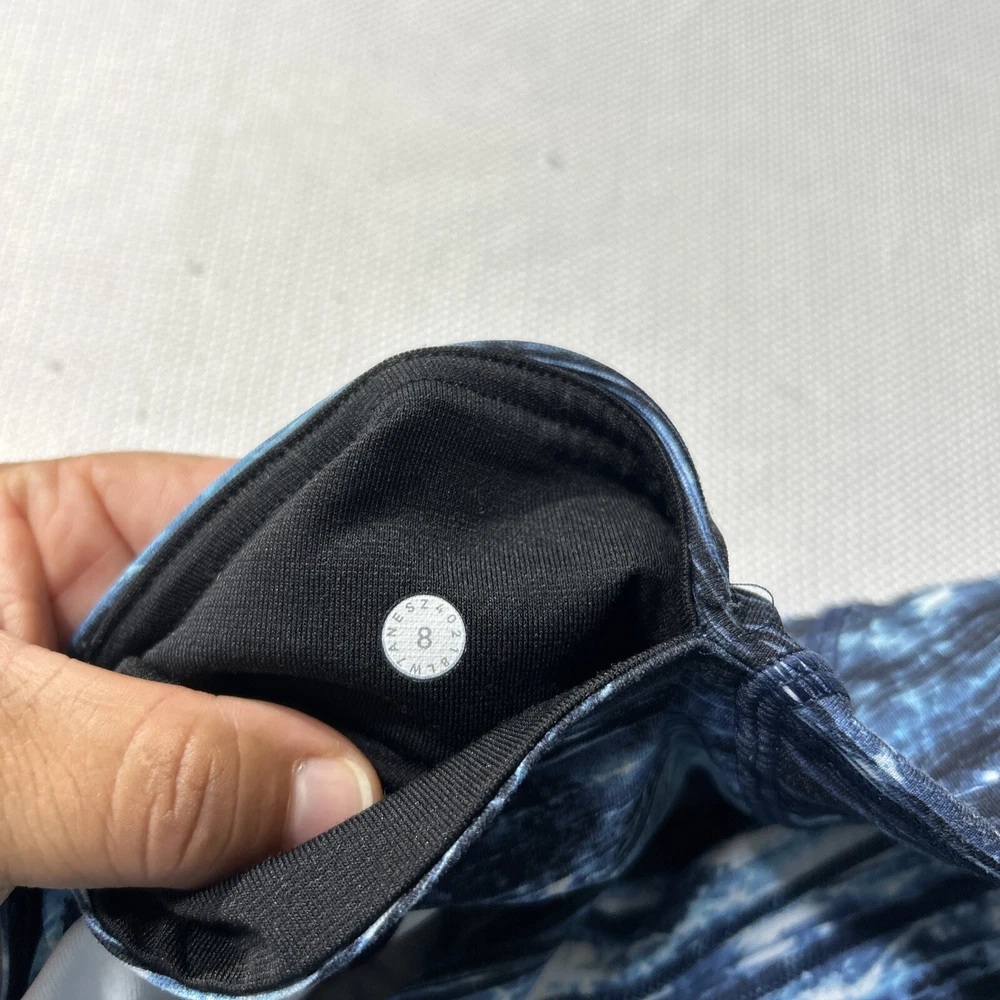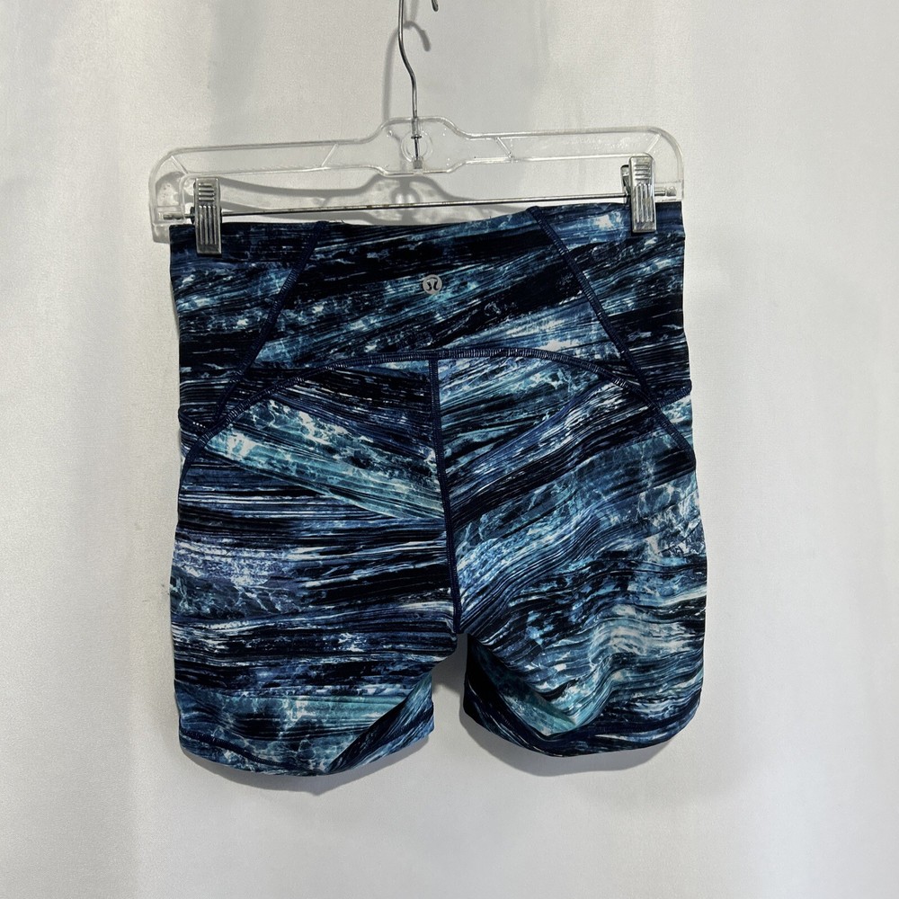 Lululemon Shorts Women’s Sz 8 Blue Black Tie Dye Mesh Biker Compression