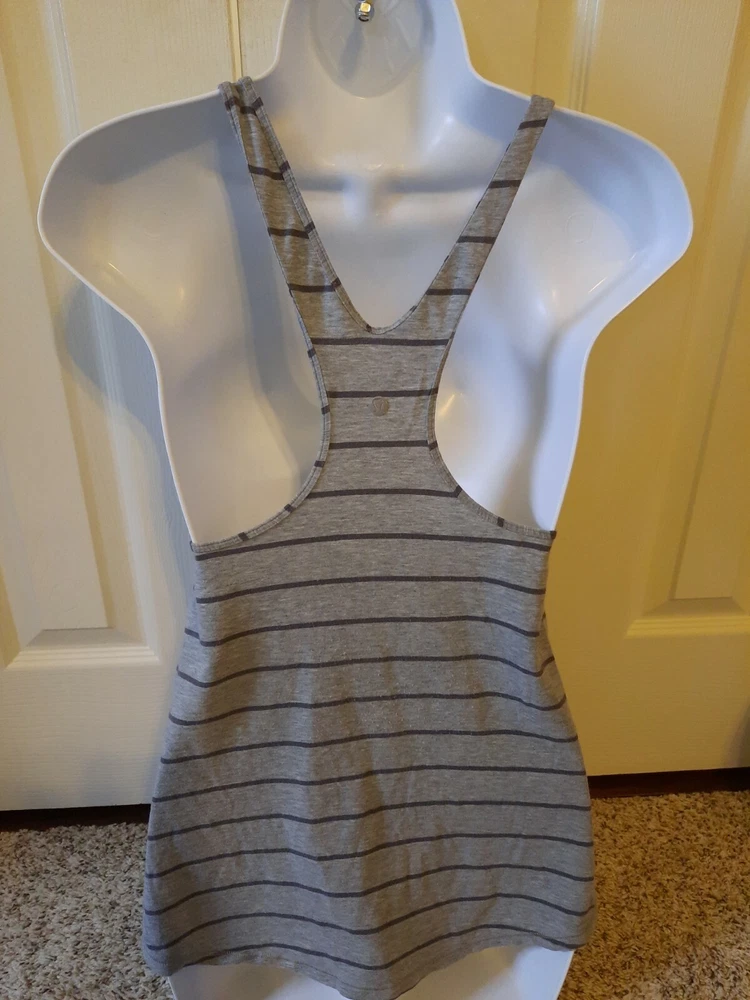 Lululemon Women's Size Small Grey Cayman Stripe Om Racerback Tank Top. Garment tag has been removed. Looks to be a size small. Minimal wear.