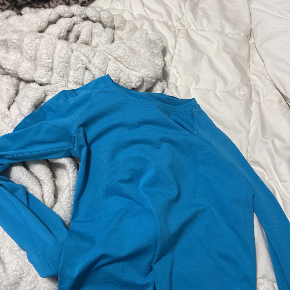 The Lululemon Women's Swiftly Tech Long Sleeve Top in Size 4, Teal is a versatile activewear piece suitable for a variety of occasions. Made from breathable nylon material, this pullover top features a classic/fitted sleeve design with a crew neck neckline. The solid teal color and sports-themed design make it perfect for running and jogging in all seasons. Easy to care for with machine washable properties, this top offers compression in the body area for added support during workouts. Ideal for women looking for a high-performance and stylish activewear option.