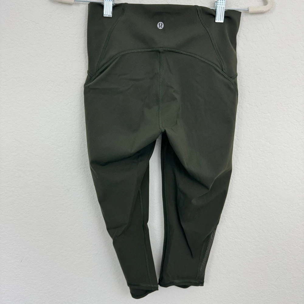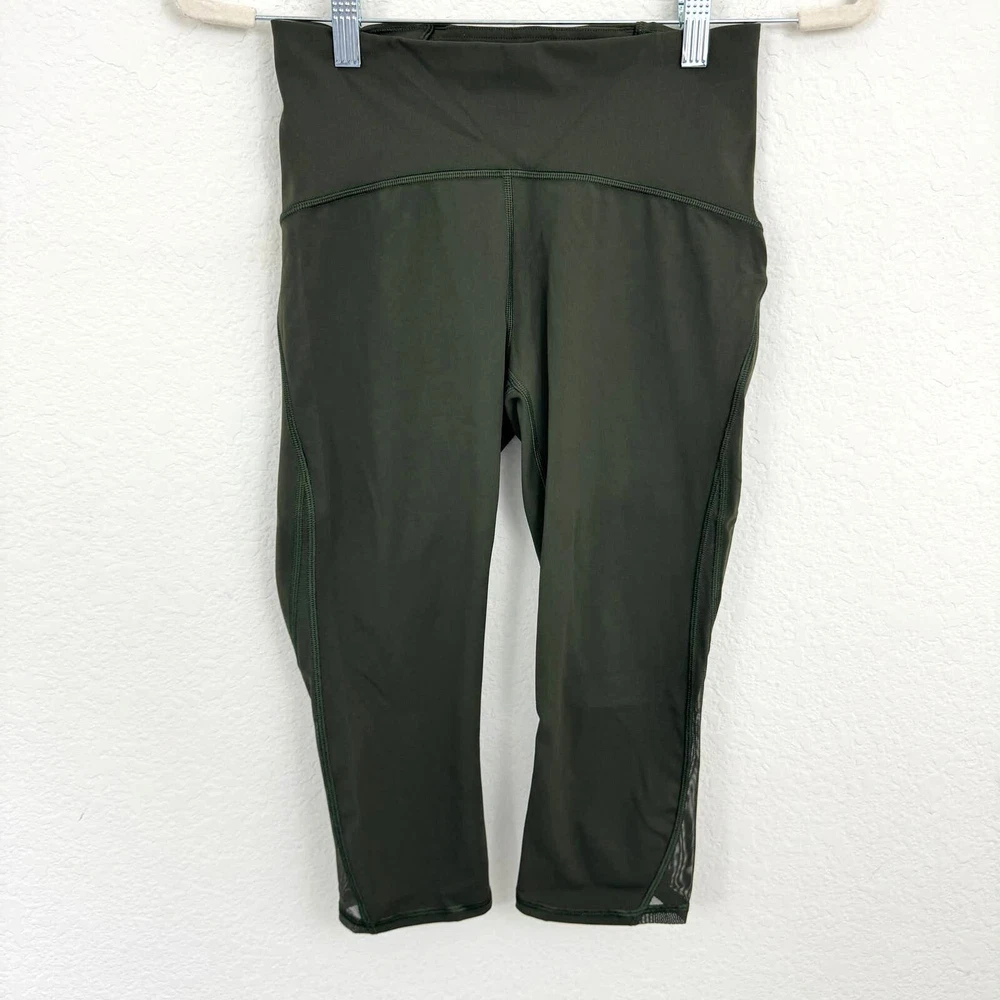 Style # W6ADDS. versatile crop has you covered from training to boot camp. The reinforced waistband lies flat so it won't dig in or slide down. Brand: Lululemon Size: 6 Measurements: Please see photos for approximate measurements. Condition: In very good pre-loved condition. Color: Olive Green Material: nylon, elastane Features: Mesh inserts at legs Back waistband pocket Drawcord: Customize the fit with the drawcord in the waistband High-rise: Keeps you feeling covered and secure Hugged sensation: Engineered to feel like a comfortable embrace throughout Breathability : Mesh fabric back provides ventilation Tags: active, activewear, athletic, gym, workout, fitness goals, athleisure, casual, yoga, pilates, outdoors, running, training Pre-owned clothing items are properly cleaned, washed, and/or steamed at high heat before listing. Model photo is meant to be representative of style and is not the actual item being purchased.