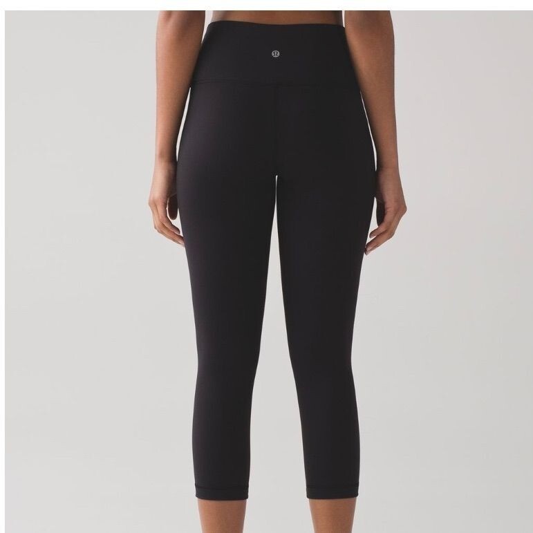 Lululemon Wunder Under Crop High Rise Leggings Gently worn. Minor blemish on right leg as shown in picture. Size - 4 Color - Black Inseam - 21 inches Style Number - W6AG0S Material - Full on Luon Original price - $88