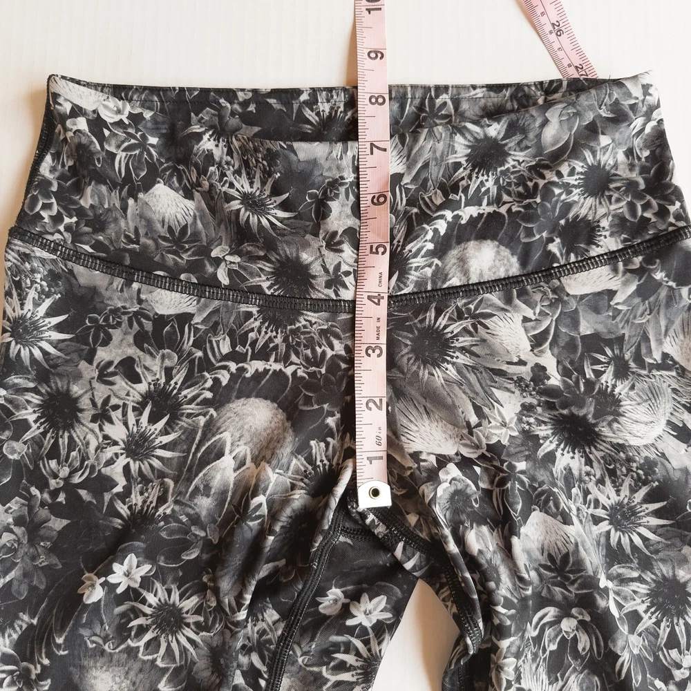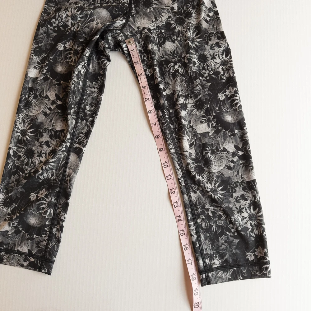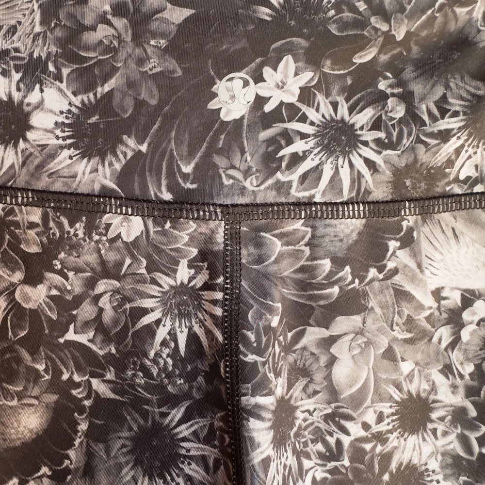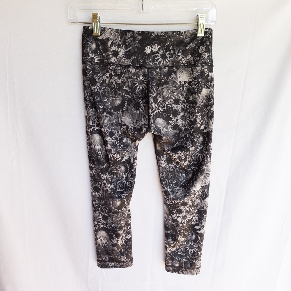 Lululemon Wunder Under Crop Pant/Tight/Legging * Condition: Great pre-owned condition. The rip tag was removed. They are otherwise in great condition with no stains, holes, or major signs of wear. * Size: 4 * All measurements are approximate and taken lying flat unless otherwise noted. Please see photos as well. * Waist: 12.25” across * Inseam: 19” * Rise: 7” * Color: Flowabunga Black Angel Wing/Black (Black, gray, white) * Pattern: Floral * Material: Full-On Luxtreme * Interlock construction offers great support and coverage * Full-On Luxtreme fabric has a cool, smooth feel * Second-skin fit * Sweat-wicking * Four-way stretch * Breathable * Wide, smooth waistband * Waistband pocket to stow key, yoga pass, or gym card * Designed for yoga, gym, commute Style Profile: Athleisure, Athletic, Activewear, Yoga, Gym, Fitness, Running, Walking All of my items are stored in a smoke-free, dog-friendly home.