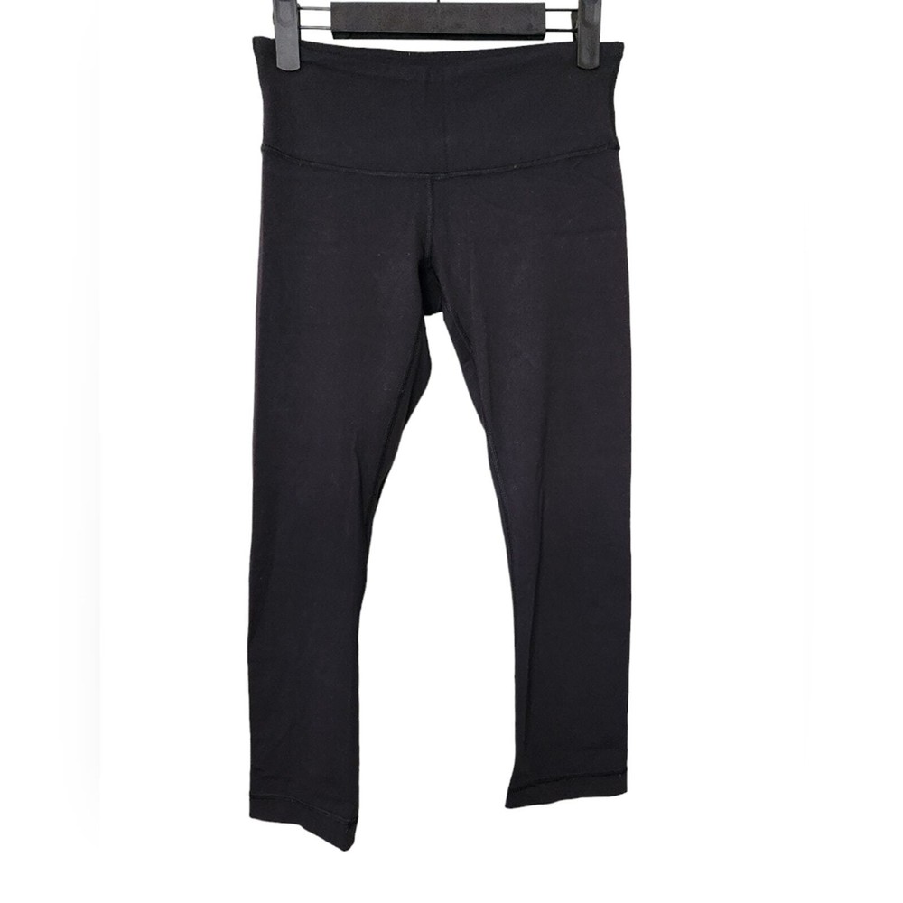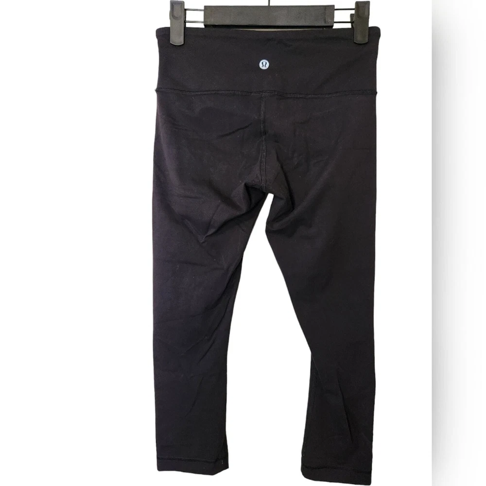 low rise wunder under crop leggings from Lululemon excellent condition. no stains, holes or pilling. logo looks new! size 4 Laying flat measurements in inches Waist 12 Rise 7 Inseam 22
