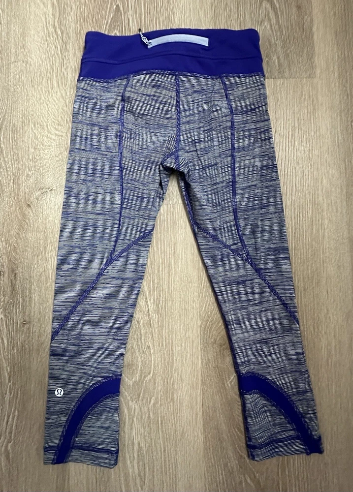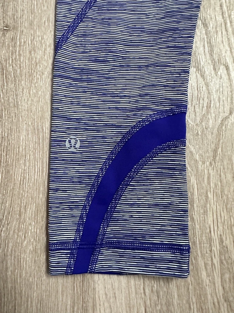 Lululemon|Inspire Crop|Purple/White Stripe|SZ 4 Preloved in like new condition. No flaws. Please see pictures for more details and measurements.