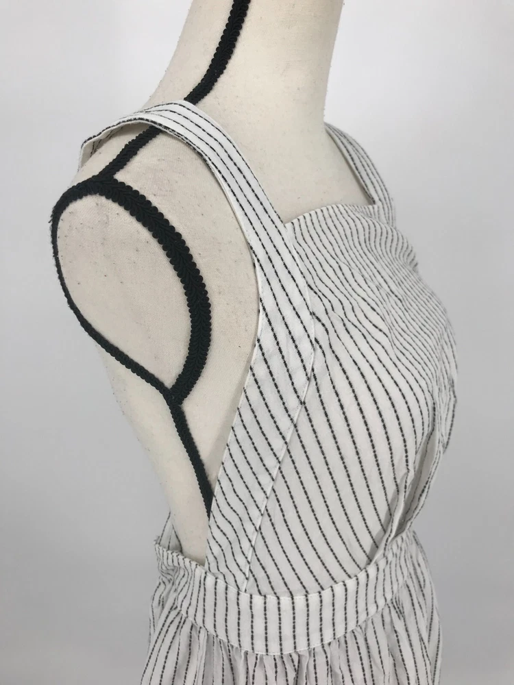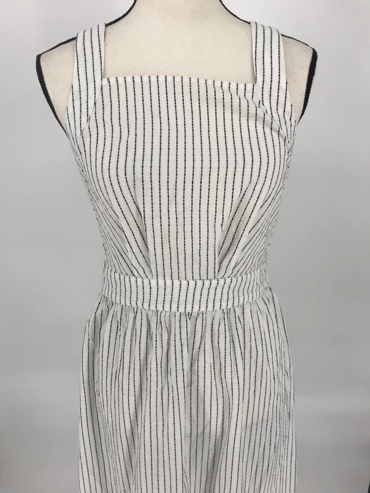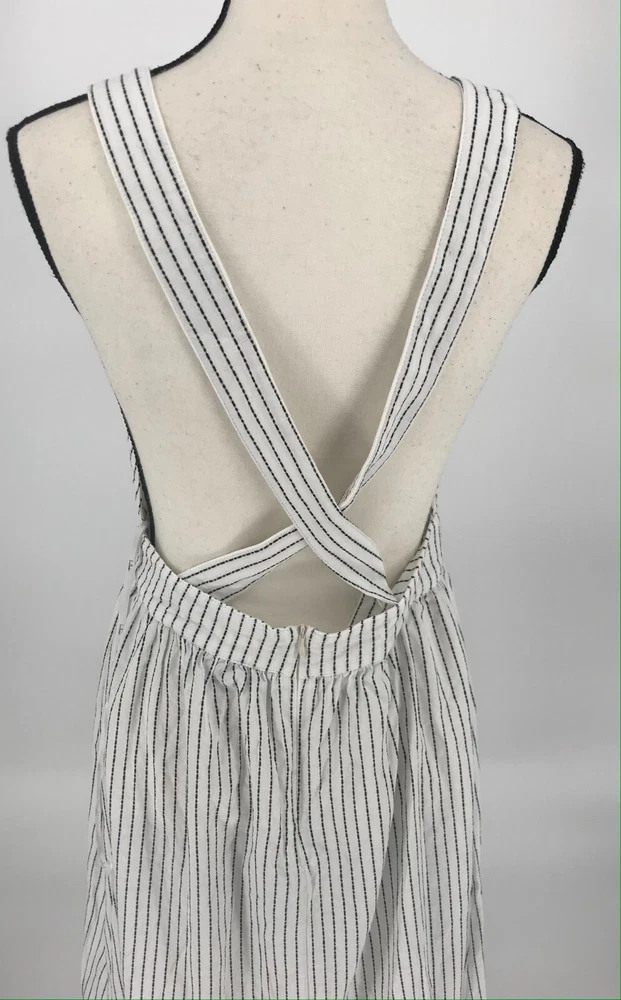 Lulus Women Apron Dress Size Small Black/White Stripe Crossback Open back