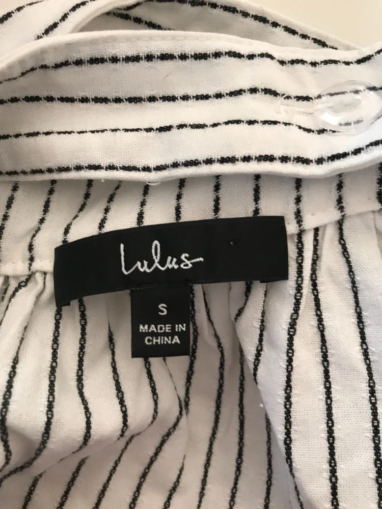 Description: Product: Lulus Womens Apron Dress | Size Small | Black/White Stripe | Crossback Open Back Description: Embrace effortless style with this chic Lulus Apron Dress in a classic black and white stripe pattern. Designed for a flattering fit in womens size small, this dress features a trendy apron-style front with a crossback design that leads to an open back, adding a playful yet sophisticated touch to your look. The black and white stripe pattern gives it a timeless appeal, while the open back and crossback straps make it a standout piece thats perfect for warm-weather outings, casual gatherings, or even a day at the beach. The apron-style front adds a touch of vintage charm, while the open back design keeps it modern and fresh. Pair this versatile dress with sandals for a laid-back look or dress it up with heels and accessories for a more polished ensemble. Whether youre headed to brunch, a summer party, or just enjoying a day out, this Lulus Apron Dress is sure to turn heads. Key Features: * Brand: Lulus * Style: Apron Dress with Crossback and Open Back * Color: Black/White Stripe * Size: Small (Womens) * Fit: Flattering and comfortable * Design: Apron-style front, crossback straps, open back * Material: Lightweight, breathable fabric * Occasion: Ideal for casual outings, summer parties, and beach days * Condition: No tag.Never Worn
