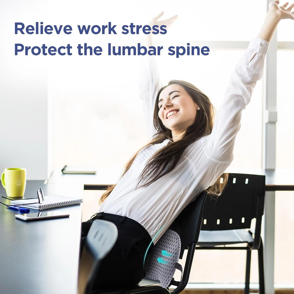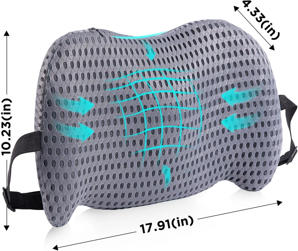 Ergonomic Design: Our expert recommended ergonomic lumbar pillow provides enhanced lower back support through heat activated technology, allowing the memory foam to conform to the natural curvature of your spine for tailored back support and sciatica pain relief Promotes Proper Posture: The slow-rebound memory foam provides the perfect balance of firmness and softness for maximum comfort and support and won’t lose its shape over time. Supports the upper and lower back to encourage an upright sitting position and relieve pressure Multifunctional Backrest: Enjoy hours of comfort during a workday in your office chair, long travel in your car, a tv marathon in your recliner chair, or as lumbar support for sleeping, or improving your skills as a gamer.This versatile lumbar support cushion is great for office desk, car, gaming,travel, gaming desk and work from home gifts Adjustable Straps: Equipped with durable elastic straps that secure the back pillow to your chair’s backrest and keep it from moving while sitting. The strap extenders ensure your back pillow will work with any chair Breathable 4d Mesh Pillowcase: The removable 4D mesh cover is machine washable and made to keep air flowing between you and the pillow, keeping you dry, cool and comfortable. Also, the quality memory foam inside absorbs shock during driving and perfectly fits the human spine curve and offers cushion & comfort to your waist no matter you sit or lay. Please note: Do not wash memory foam Product Description Sitting Without Back Pain is Possible with the Everlasting Comfort Back Cushion This lumbar support pillow can be used in a wide variety of situations. Office workers find our lumbar pillow to be an essential accessory when working at their desks or home for extended periods of time as they are less inclined to slump in their chair. Breathable Mesh Cover Soft is the fabric more skin-friendly, and provide superior air circulation and breathability to keep you cool while easily standing up to tough everyday use. “M type” Protection + “T point” Support The ergonomic design combines the function of waist protection and waist support. The “M type” zone makes it easy to embrace the whole waist comfortably and tightly. While the “T point” raised area supports the spinal gap and improves the sitting posture. Ergonomic Shape Designed to Elevate Comfort This pillow complements your backs natural arches to elevate comfort while sitting for extended periods of time.This contoured shape of our lumbar pillow will gently help guide your lower back and spine to mold to the lumbar pillow for a secure and comfortable hold that provides maximum comfort. Improve Your Sitting Posture to Enhance Your Temperament Proper lumbar support for your back’s natural curves goes a long way to reducing back tension and pressure. Our ergonomically designed back cushion is curved to allow you to sit up with the comfort and support needed to reduce slouching and improve overall sitting posture. Multi-functional Lumbar Pillow with a Wide Range of Uses Get the best in back support and comfort with our Lumbar Support Pillow. Whether you’re taking a road trip, traveling, pulling an all-nighter on a paper, or trying to meet a deadline at work, our chair back cushion provides your back with the support it needs to keep back pain at bay.