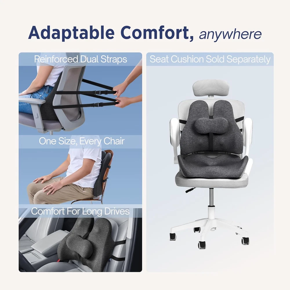 Store New Arrivals Add to Favorite View Feedback Contact Lumbar Support Pillow for Office Chair - Lower Back Pain Relief Cushion with Adjustable Spinealign™ Bolster, Memory Foam Pillow for Car, Couch, Gaming Seats - Dual Straps, Dark Grey Description Item model number Al-lp001 Variety Lumbar Support Pillow Pattern Solid Item Firmness Description Medium-firm Support Number of Pieces 1 Unit Count 1.0 Count Product Dimensions 16.1"L x 6.3"W Age Range (Description) Adult Specific Uses For Product Back Support, Car Seat, Office Chair, Travel Material Type Free Hypoallergenic, Latex Free Model Name Standard Lumbar Support Fabric Type 100% Polyurethane Memory Foam, 68% Polyester, 30.5% Viscose, 1.2% Spandex Item Weight 2.1 pounds Fill Material Memory Foam Material Feature Ergonomic, Memory Foam Special Feature Dual Adjustable Straps, Ergonomic Design, Washable Cover Shape Rectangular Use for Back Recommended Uses For Product Back Support, Car Seat, Office Chair, Wheelchair Size Standard ✔ DESIGNED BY ERGONOMISTS FOR BACK SUPPORT: Adjustable SpineAlign bolster slides to support the lower–mid back and reduce pressure buildup, while PostureWing side panels help steady posture through long sitting sessions. Ideal for use as a lumbar support pillow for office chair or car lumbar support for driving seat. ✔ ALL-DAY SUPPORT WITH ALIGNCORE MEMORY FOAM: Dense, slow-rebound memory foam maintains lift without flattening, cushioning pressure throughout the day. Infused with bamboo charcoal to help keep the cushion fresh over time. A perfect back support pillow or lower back pillow for long sitting hours at work or home. ✔ SECURE ON OFFICE, GAMING & CAR SEATS: Dual adjustable straps fit seatback circumference 20–45 in to keep the cushion in place — from slim dining chairs to most car seats. Works great as a lumbar support pillow for car, office chair lumbar support, or gaming chair back support. ✔ BREATHABLE COVER, EASY WASH: Soft, stretch Terry-Knit cover flexes with your posture and improves airflow during long sits. Removable and machine-washable for everyday clean — ideal as a back pillow for office chair, chair cushion for back pain, or couch back cushion. ✔ WHAT TO EXPECT (FOR BEST COMFORT): Feels medium-firm in the first few days and settles by week two as the foam adapts. Vent 24 hours before first use. Not ideal if you prefer ultra-plush cushions. One of the best options for back pain relief and lower back support for those who sit daily. Product description ABOUT US We offer the best prices around on high quality products. Our E-store includes media such as books, movies, music and games while offering electronics, toys, sporting apparel, clothing, tools, general home, garden items and more. SHIPPING We are always working hard to ensure your package arrives as soon as possible. Please understand that some factors like weather, high postal traffic, and the performance of shipping companies are outside of our control. We offer free shipping to the lower 48 states and ship within 2 business days of payment, usually sooner. We do not accept P.O. Boxes. Please provide a physical address. RETURNS We offer a 30-Day Return Policy on items which you are not completely satisfied with. You have the option for a full-refund or an exchange of the item. No returns are available on items shipped outside of the USA. PAYMENT We accept PayPal. CONTACT US This page content is yet to come Please ad us to your favorite seller and visit again later Thank You CUSTOMER SATISFACTION We try our very best to make sure every customer is completely satisfied. If there's a problem, message us! We're happy to help.