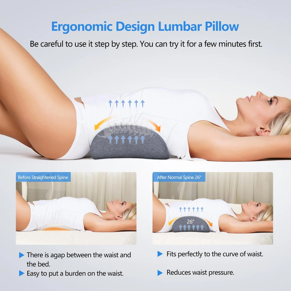 【 Heated Lumbar Support Pillow 】 We added heat function on the basis of ordinary lumbar pillow. Lumbar pillow follows the natural arch of the lower back, providing comfort and mild support for the lumbar and help improve wrong posture. Combined with graphene heating therapy, it appropriate relieves waist pain, sciatic nerve and scoliosis, and keeps your hip and spine in ideal alignment while sleeping. (NOT USING the heating function while sleeping.) 【 Ergonomic Lumbar Pillow 】 The wrapped -wing design to help improve spine posture, prevent the strain of lumbar muscles and make the lumbar spine stretch, perfect for relieving lumbar pressure evenly keep the waist curve. The waist support pillow fills the gap between the waist and bed, gently supports the lower back, and distributes the pressure to reduce the burden on the lower back, relax the muscles of the lower back and waist. Help achieve an ideal posture and a fit to the waist. 【 Thermal Therapy 】 When you choose to use USB heating function (Temperature regulation and automatic shut-off), heated lumbar pillow help blood circulation, and relieve lower back pain, sciatic nerve. 9 convex points are designed to help take care of the lumbar spine. The USB heating lumbar pillow has 3 adjustable temperatures and 3 hours automatic shutdown function, provide you with comfortable temperature to meet the heating requirements of most customers. 【 Premium Memory Foam 】 Inner material is made with 100% premium quality high density memory foam, which can retain its shape for continued support With breathable and moisture-wicking properties, comfortable back lumbar pillow provides long-lasting comfort for hours. Superior to other bed positioned pillows, it won't go flat over time and provides moderate support and spinal alignment. Our lumbar bed pillow comes with hypoallergenic, removable zipper breathable pillowcase, easy cleaning. 【 Widely Application 】 This lower back pillow lumbar support cushion not only relieve your lower back Pain while adapting to the curve of your spine when sleeping on your lower back, but also can be placed in the calf or below the knee as a leg pillow. Waist pillows apply for bed, chair, sofa, you can relax your waist and relieve waist fatigue at home, in the office and in the car at any time. Suit for side sleeper, back sleeper, stomach sleeper, Long time driver, desk workers. * Regarding the USB heating function, this product can't be recharged, it can only keep the USB cable connected to the power supply to use the heating function, there is no plug or power supply in the package, only USB cable with controller. When using, you need to plug the USB cable into the power bank, PC or USB adapter (5V=1A charger/DC USB input). Do not use the heating function in a closed space without heat dissipation, such as a bed quilt, to avoid burns. * When using the USB heating function, do not use it on the surface of thick clothes, otherwise the heating heat will not be felt. If it heats up too quickly, you can use clothes and towels to keep a certain distance from your back, use the controller to adjust the temperature or temporarily turn off the power. * The height of the lumbar pillow is 2.4 inches at the center and the length is 17.7 inches.