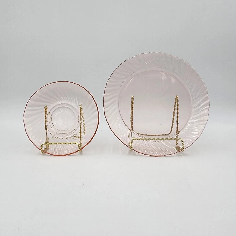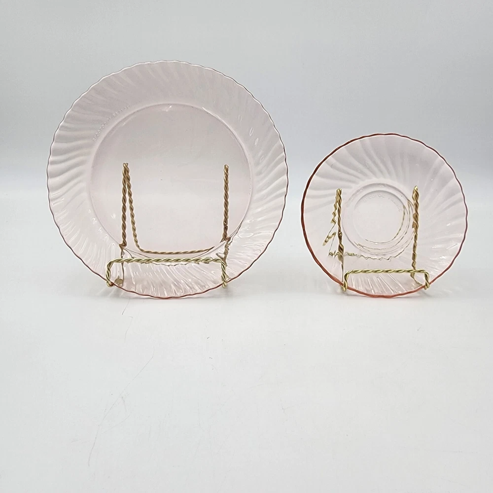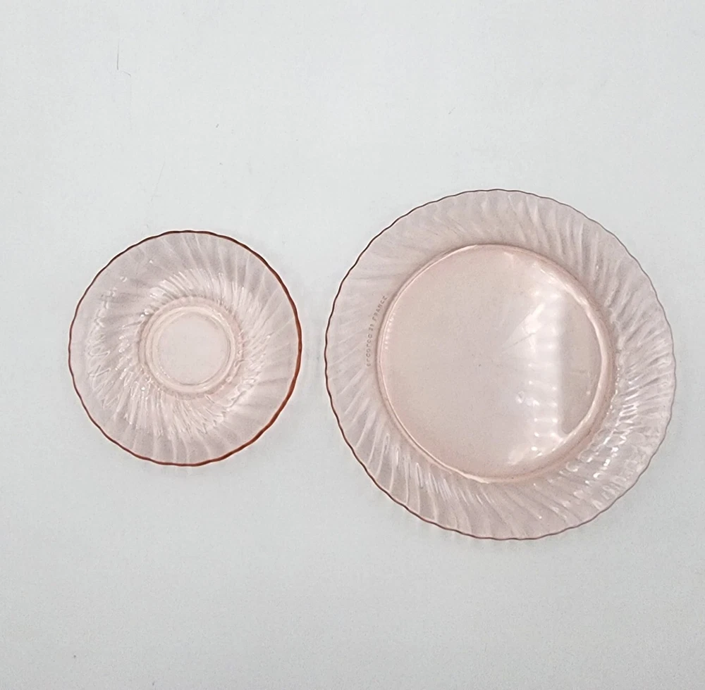 Set Includes:Dinner Plate, Plate Set, Salad PlateCare Instructions:Hand Wash OnlyProduction Technique:Fused GlassFinish:GlossyOccasion:All OccasionsShape:RoundPattern:RosalineCountry/Region of Manufacture:FranceProduction Style:Pressed GlassBackstamp:ImpressedVintage:YesFeatures:Decorative, StackableMaterial:GlassOriginal/Licensed Reproduction:OriginalNumber of Items in Set:Four-PieceEra:Late 20th Century (1970-1999)Color:PinkTime Period Manufactured:1980-1989Brand:ArcorocDepartment:AdultAntique:NoHandmade:NoType:Plate
