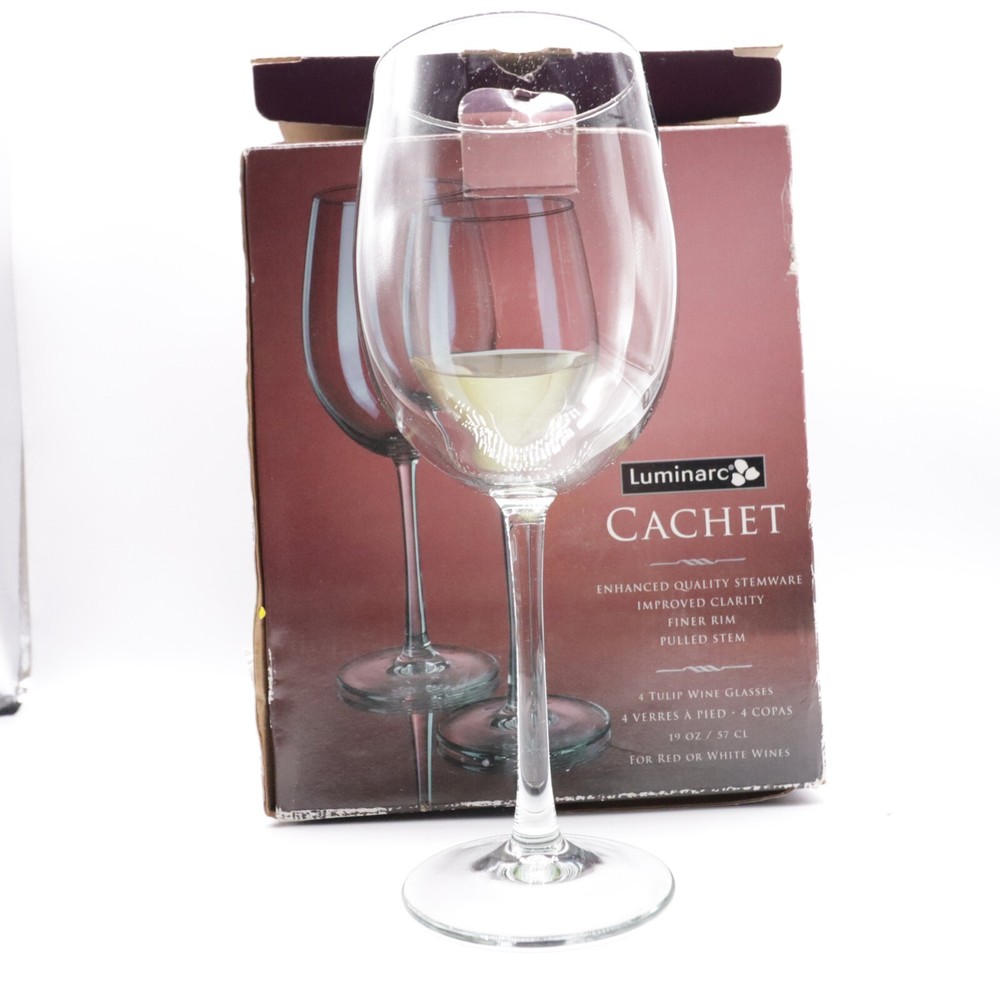 Color: Clear Material: Glass gtin13: 883314616170 Set Includes: Red Wine Glass, White Wine Glass, Wine Glass Model: LUMINARC CACHET Custom Bundle: No Department: Unisex Adults Occasion: All Occasions Brand: Luminarc Glassware Type: Wine Glass MPN: 1THTQ0OTI0 Country/Region of Manufacture: United States Type: Wine Glass Theme: Food & Drink Capacity: 19 oz. Service For: 4 Number of Items in Set: Four-Piece UPC: 883314616170 Item Width: 3.5 inches Item Height: 8.25 inches Features: Dishwasher Safe