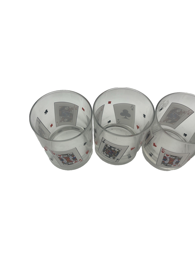 Service For:4Design:RoundDepartment:AdultsMaterial:GlassShape:RoundCountry/Region of Manufacture:United StatesGlassware Type:Drinking GlassNumber of Items in Set:Four-PieceTheme:Gambling/CasinoSet Includes:Whiskey GlassBrand:LuminarcStyle:Mid-Century ModernColor:MulticolorPattern:NoveltyType:Whisky GlassOccasion:All Occasions