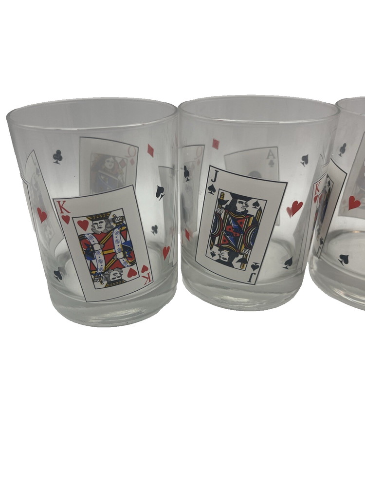 Luminarc Card Party Poker Whiskey Drink Bar Glasses Lot of (4)
