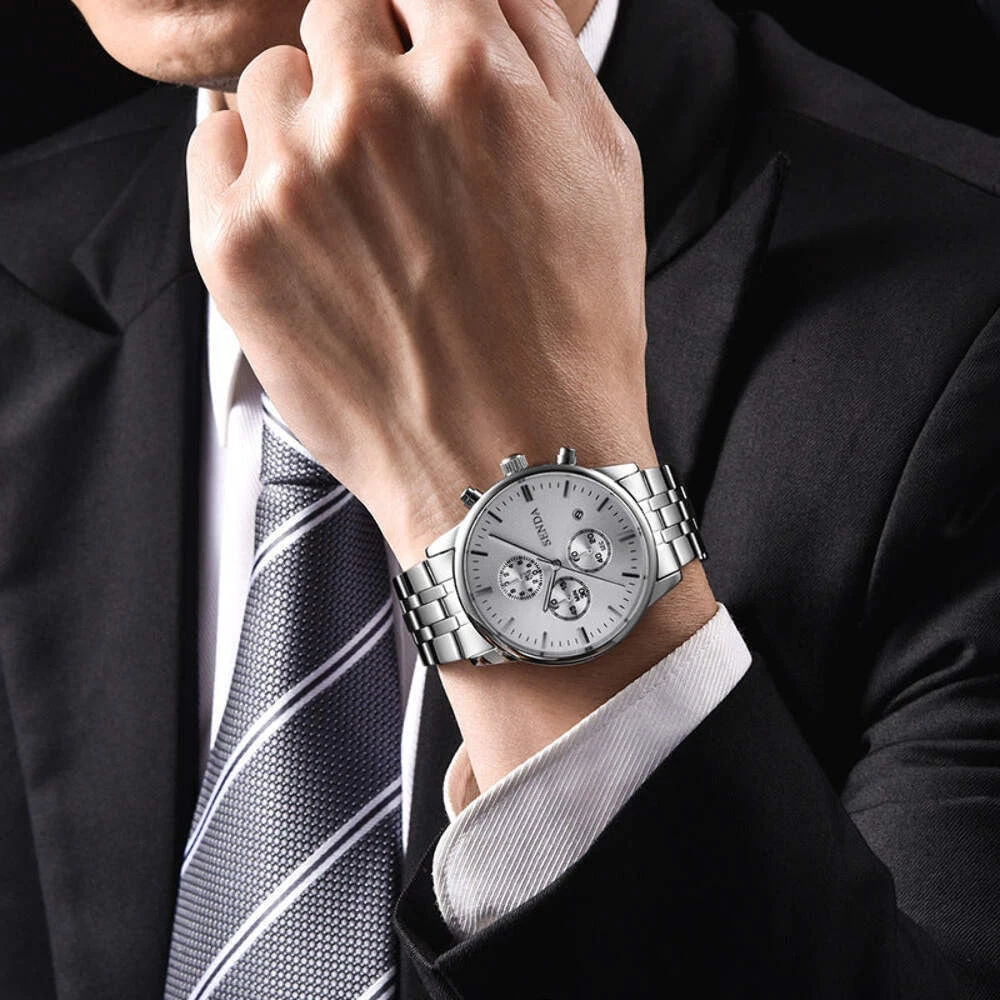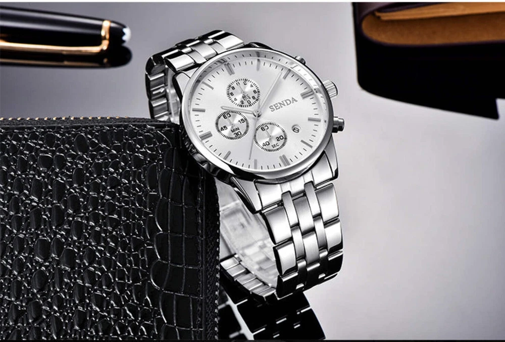 Luminous 50m Waterproof Quartz Chronograph Calendar Watch with Stainless Steel Buckle Special functions: luminous, decoration, chronograph, calendar, small three hands, 24-hour indication Applicable people: adults Waterproof: yes Waterproof performance: 50m Movement type: quartz Thickness: 10mm Dial diameter: 43mm Buckle material: stainless steel Luminous 50m Waterproof Quartz Chronograph Calendar Watch with Stainless Steel Buckle Special functions: luminous, decoration, chronograph, calendar, small three hands, 24-hour indication Applicable people: adults Waterproof: yes Waterproof performance: 50m Movement type: quartz Thickness: 10mm Dial diameter: 43mm Buckle material: stainless steel eBay integration by