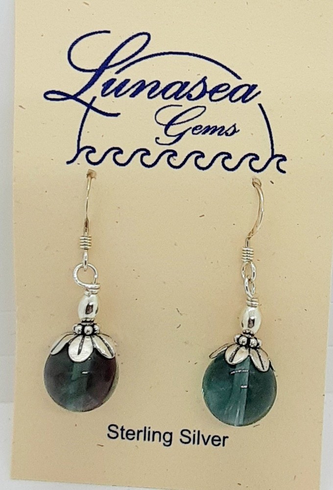 Lunasea Treasures Fluorite Gemstone 12mm Sterling Silver Earrings
