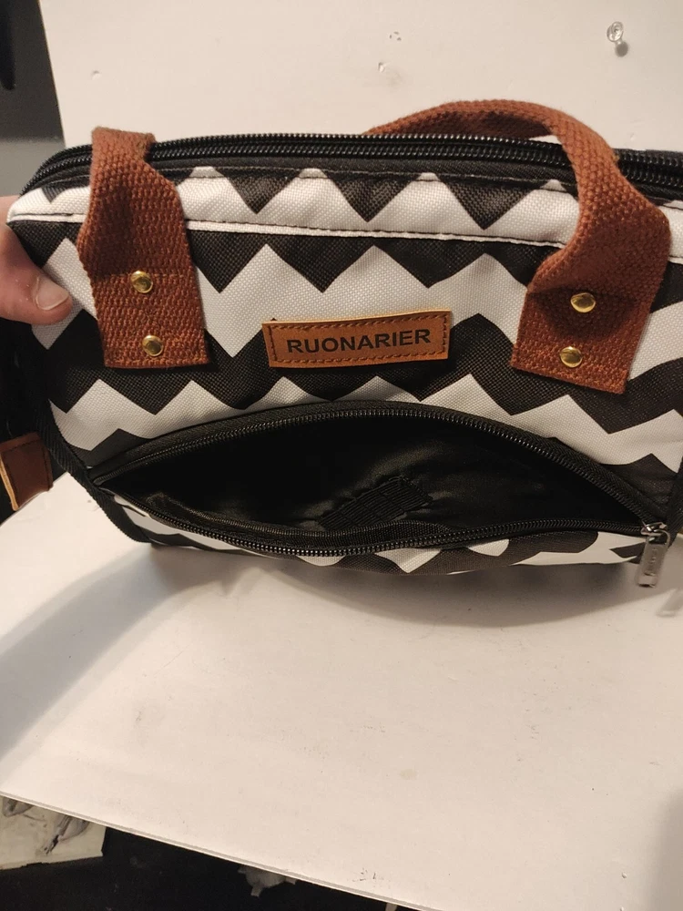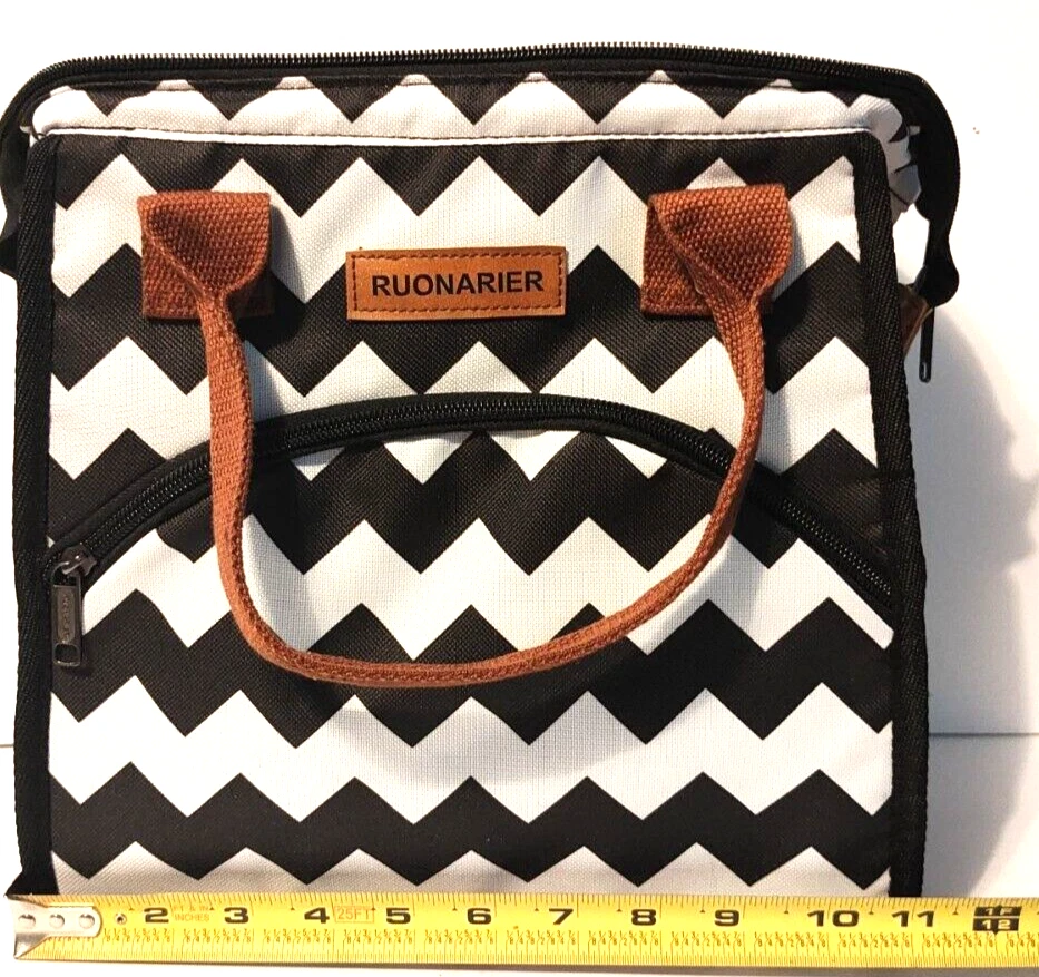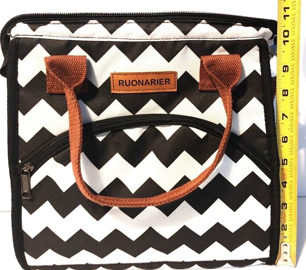 Material: insulated aluminum foil lining and an PE foam interlayer to keep Pattern: Zig-Zag Item Height: Item Height MPN: Does not apply Department: Girls Color: Black and White SIZE: 10 x 6 x 7 (L x W x H) Character: FASHIONABLE, WIDE OPENING DESIGN, VERSATILE, Adjustable, Easy to Clean, Folding, Reusable, With Handle, PERFECT GIFT Number of Items in Set: Number of Items in Set Set Includes: Set Includes Brand: Ruonarier Number of Compartments: 4 Type: Reusable Lunch Bags Style: Modern Capacity: Capacity Seller Notes: “Excellent condition” Item Width: 6 in