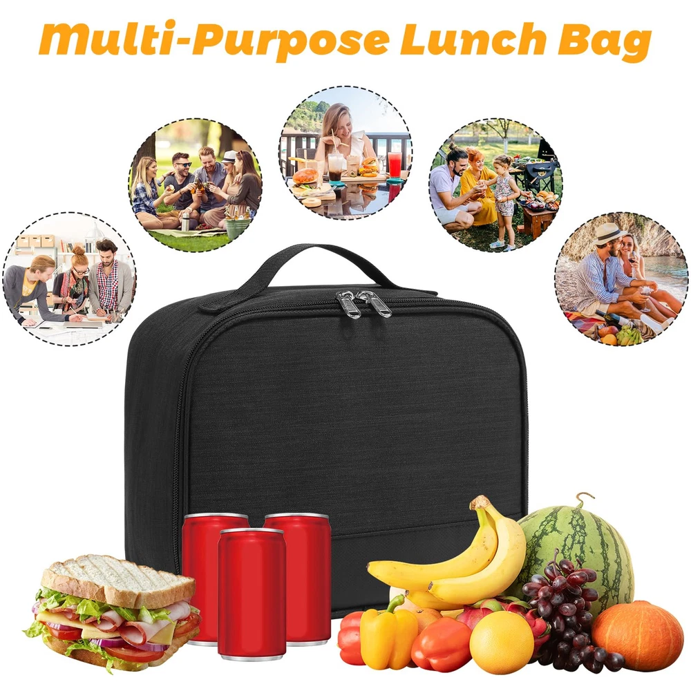 【Portable & Light-Weight Lunch Box】: This lunch bag is so Portable & Light-Weight that it perfect for everyday used by Men Women. 【Suitable Size】: The exact size (8.7x 4.5x 10.2in / 22 x 11x 26cm). Spacious enough to fit 6 cans of soda, or person’s lunch and more 【Perfect Size for person lunch】: The exact size (8.7x 4.5x 10.2in / 22 x 11x 26cm). With enough space to carry lunch for more than person, this lunch bag is perfect for outdoor 【 Easy to Clean & Waterproof】: The durable material of this lunch box makes it easy to clean and waterproof enough for travel 【Durable Lunch Bag】: Made with high-quality materials, this lunch box is designed to last, ensuring its longevity and value for money.