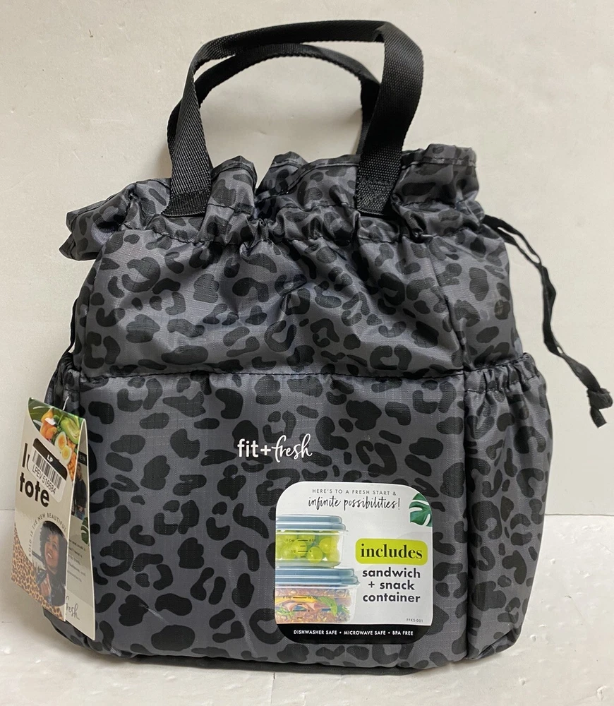 Lunch Tote Bag Leopard Grey Black Print Insulated (No Containers Included) B1.